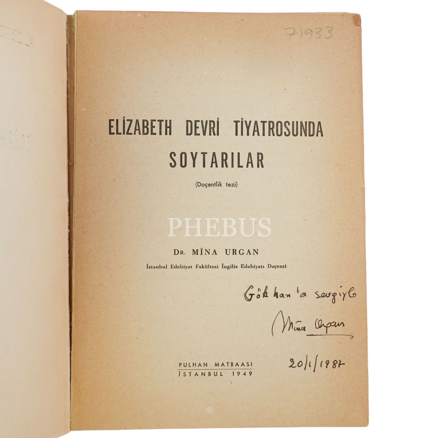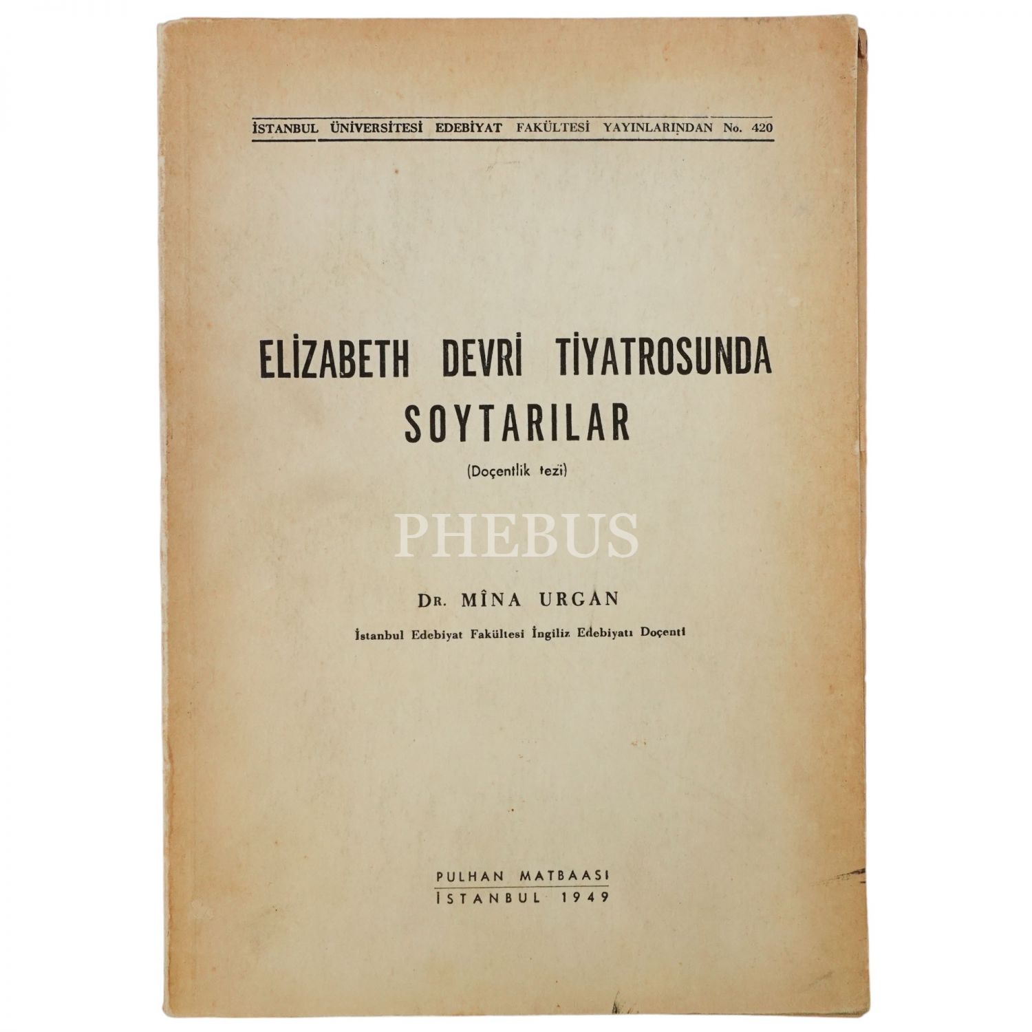 ELIZABETH DEVRİ TİYATROSUNDA SOYTARILAR, Mina Urgan, 1949, İstanbul Üniversitesi Edebiyat Fakültesi Yayınları, 403 sayfa, 15x21 cm...