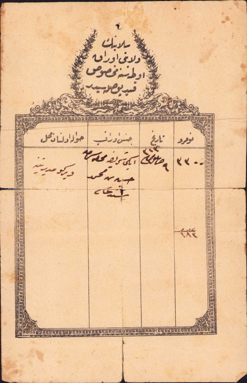 Osmanlıca Selanik Vilayeti evrak odasına mahsus kayıt pusulası, 1313, haliyle, 13x20 cm
