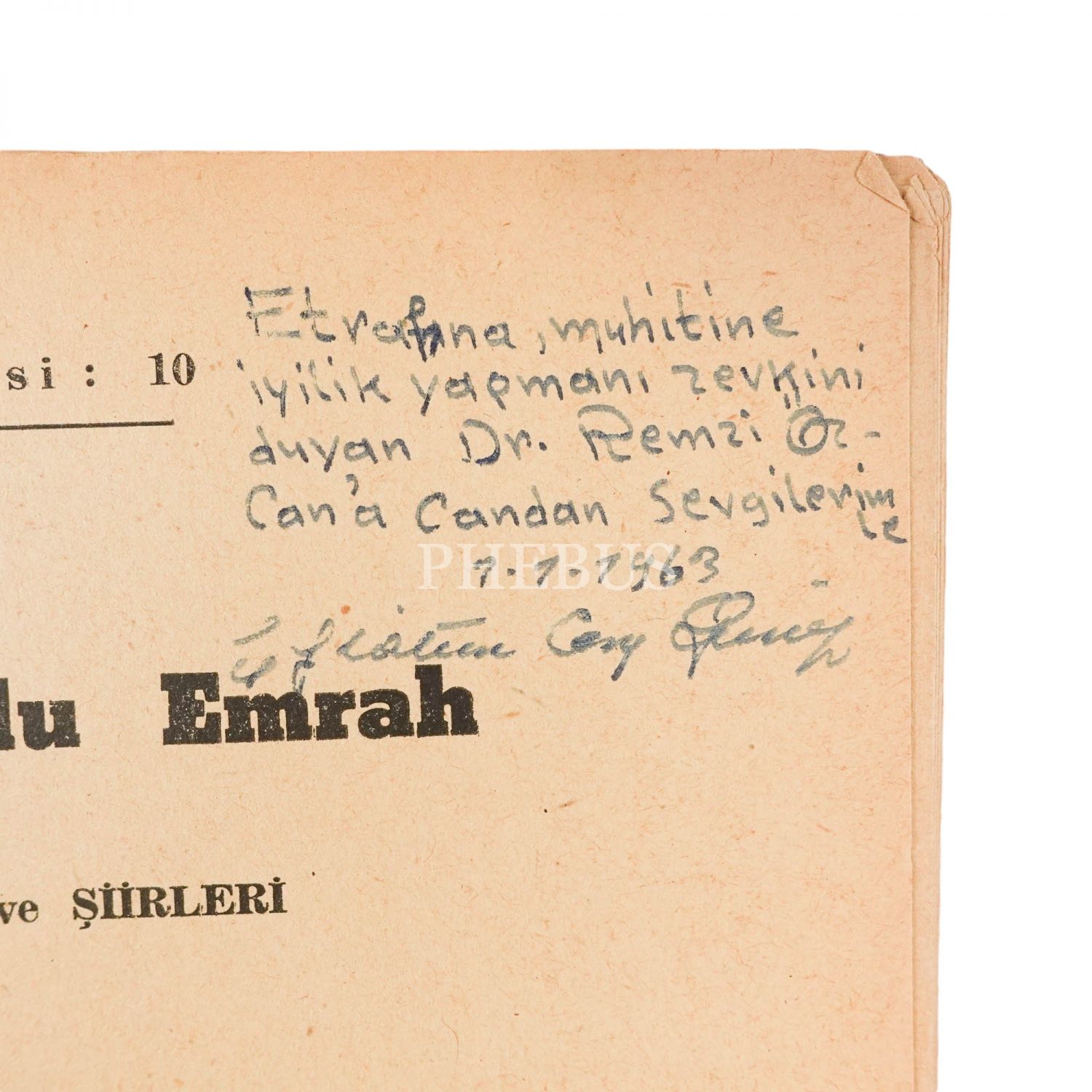 "Etrafına muhitine iyilik yapmanı zevkini duyan Dr. Remzi Özcan´a candan sevgilerimle" ithafıyla 1 Ocak 1963 tarihinde imzalanmıştır.
