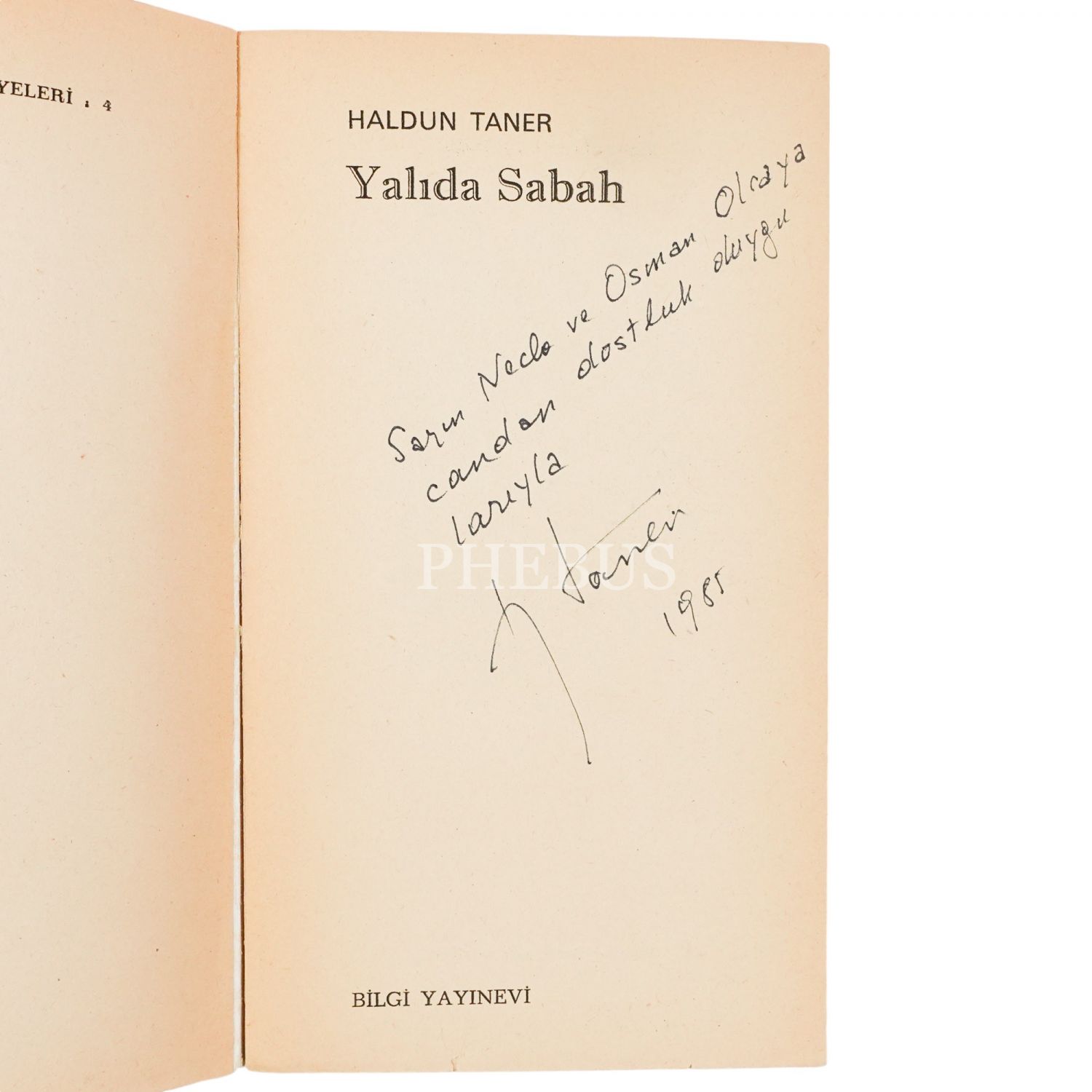 "Sayın Necla ve Osman Olcay´a candan dostluk duygularıyla" ithafıyla imzalanmıştır.