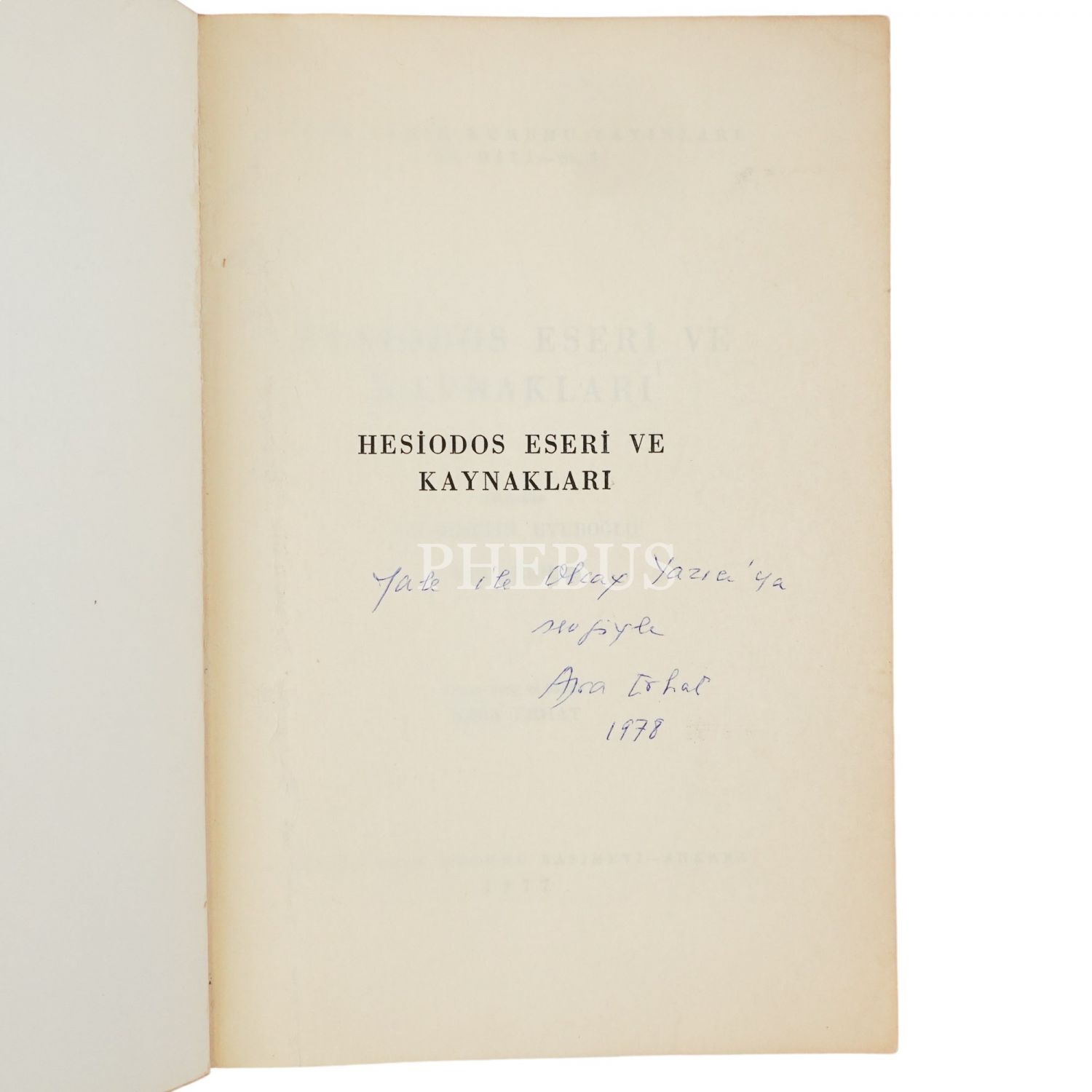 HESİODOS ESERİ VE KAYNAKLARI, (çevirenler: Sabahattin Eyuboğlu - Azra Erhat), 1977, Türk Tarih Kurumu Yayınları, 228 sayfa, 17x24 cm....