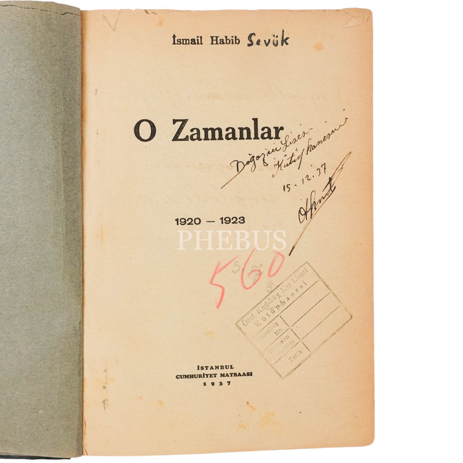 O ZAMANLAR, İsmail Habib Sevük, 1937, Cumhuriyet Matbaası, 322 sayfa, 15x21 cm...