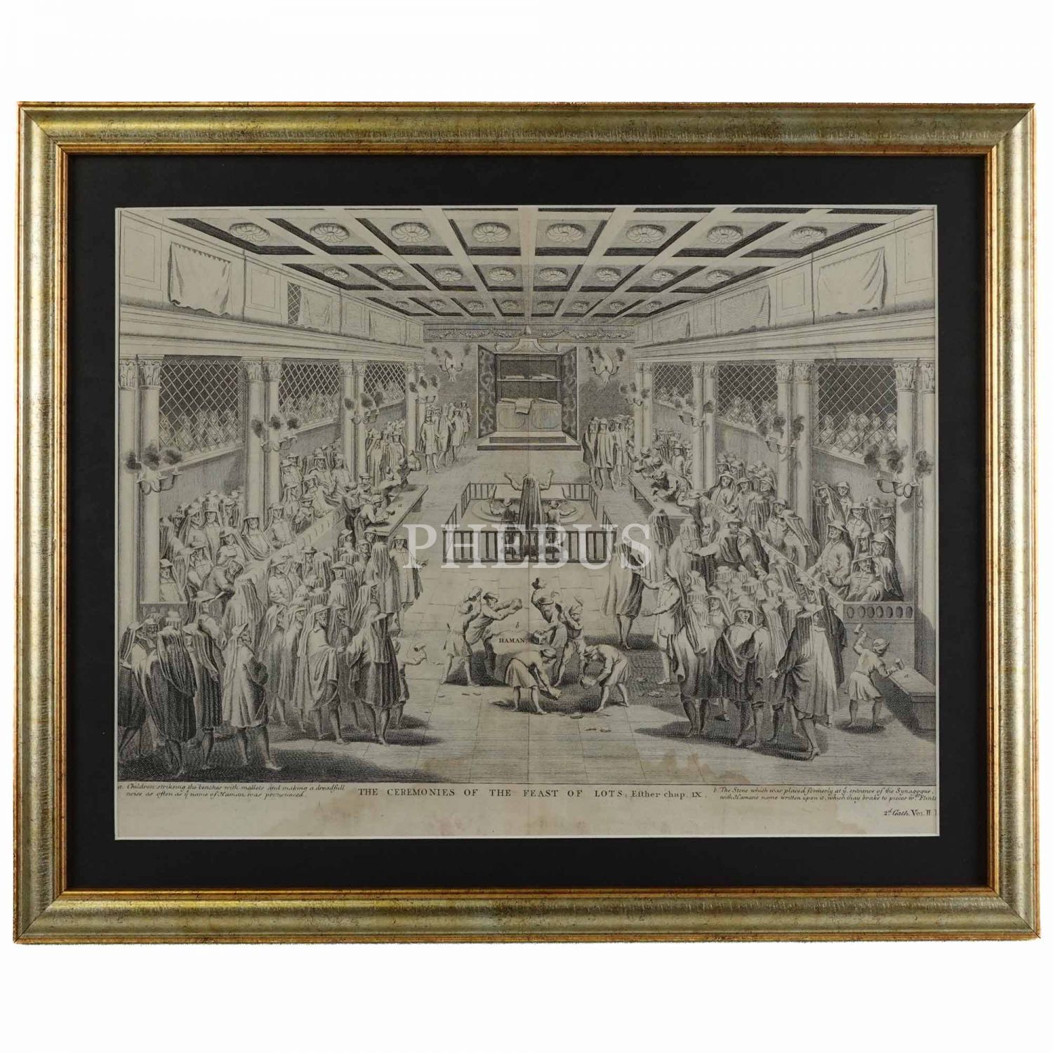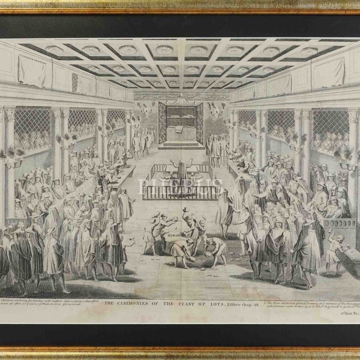 Purim Bayramı törenleri, "The Ceremonies of the Feast of Lots (Esther chap. IX)", 1764, çerçevesiyle birlikte 53x43 cm...