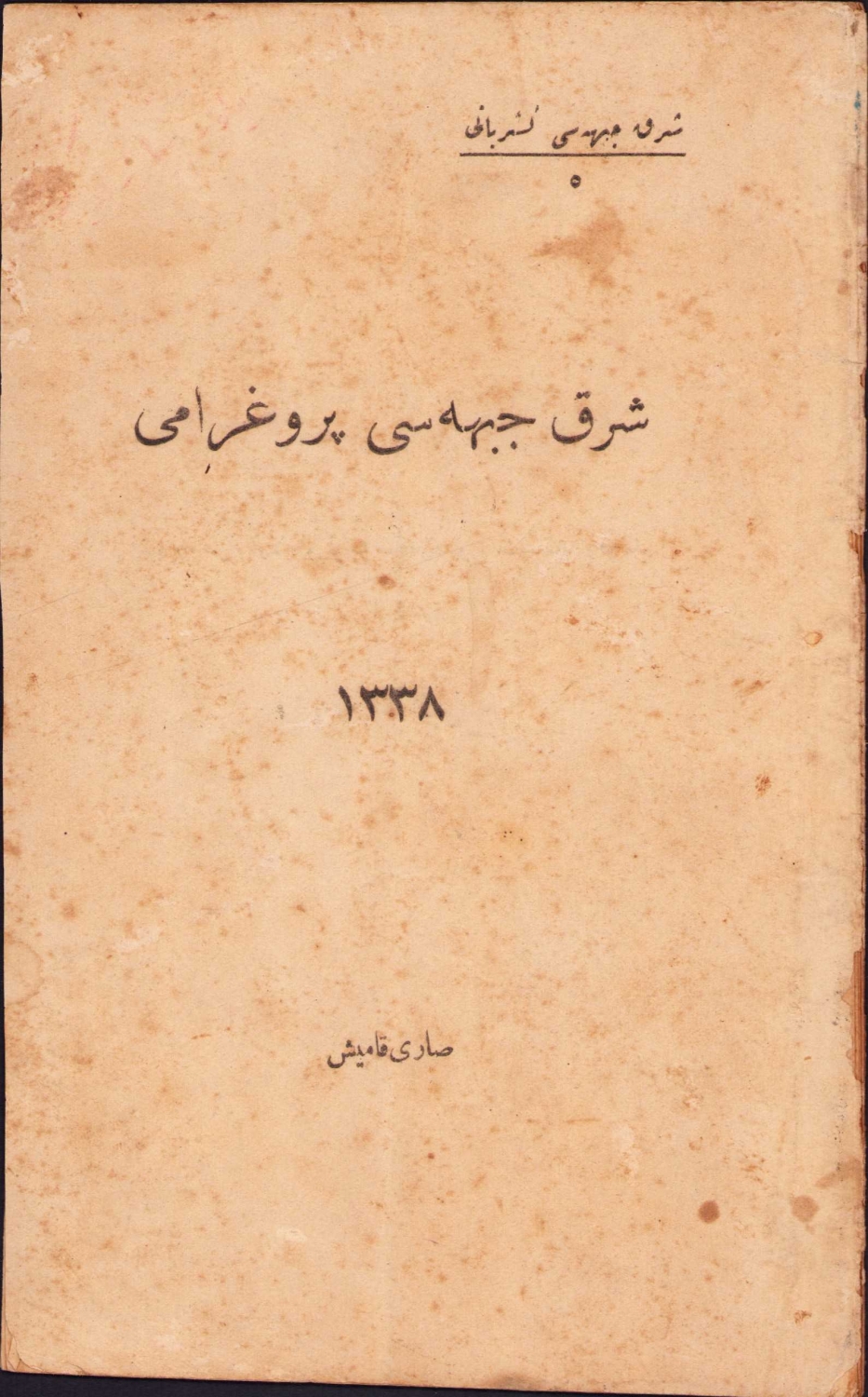 Osmanlıca Şark Cephesi Neşriyatı: Şark Cephesi Programı, Şark Cephesi Kumandan Kazım Karbekir, 1338, Sarıkamış Baskısı, 25 sayfa, 13x21 cm