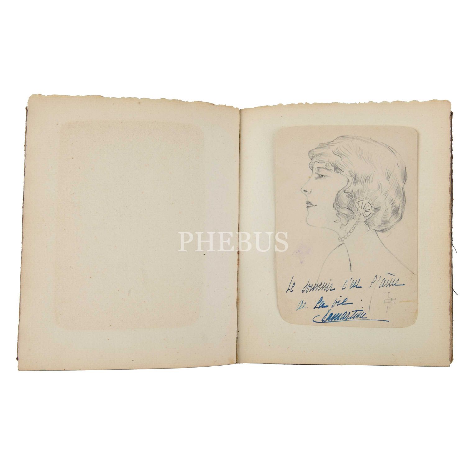Şehzade Ömer Faruk, Sâbiha Sultan, Prens Sabahattin, Damad Mehmed Raşid, Sâmi Paşazâde Sezâi, Uşşâkizâde Hâlid Ziya, Vedad Uşşakî (Halid Ziya´nın oğlu), Refik Hâlid, Nâzım (Hikmet), Afife (Jâle) gibi, devrin önde gelen isimlerinin yazı, imza ve çizimlerinin yer aldığı, Mefharet Hakkı Hanım’a ait hatıra defteri… Baskılı, deri cilt içinde, 96 sayfa, 15x17 cm…