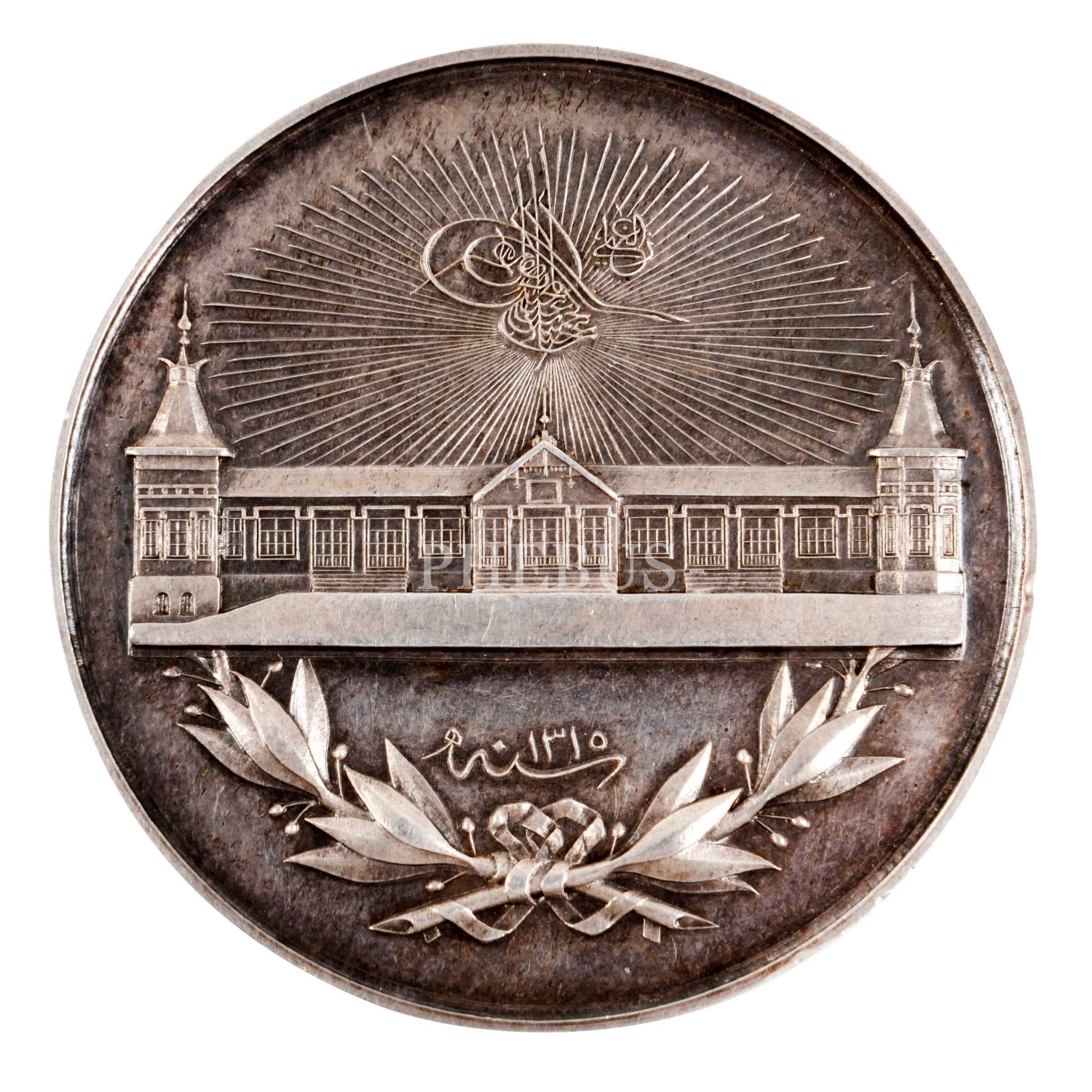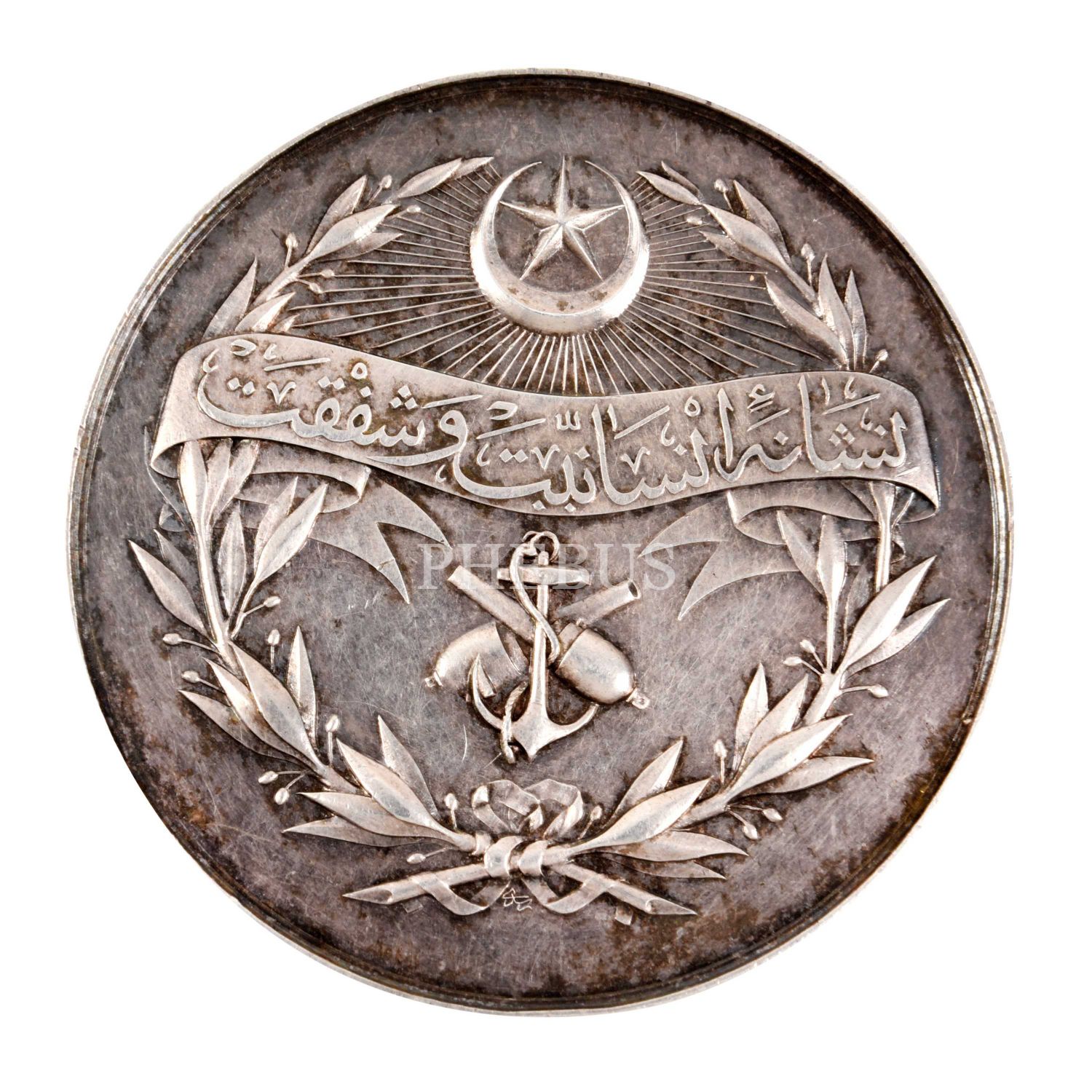 Gümüş, büyük boy Malül Askere İane Nişanı (Evlad-ı Şüheda), 1315 (1897), "Nişane-i İnsaniyyet ve Şefkat", çap 6 cm...