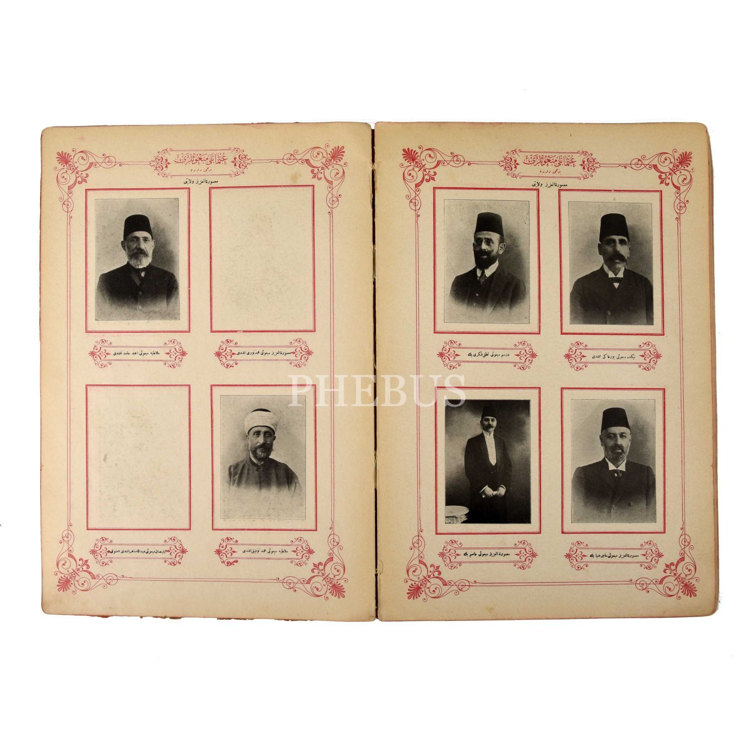 II. Meşrutiyetin ilanı sonrasında 32 yıllık bir aradan sonra yeniden açılan meclisin birinci devresinde yer alan mebusların, intihab ettikleri vilayetlere göre sınıflandırılarak yer aldıkları albüm... Devrin bütün uleması, üdebası, meşahiri...