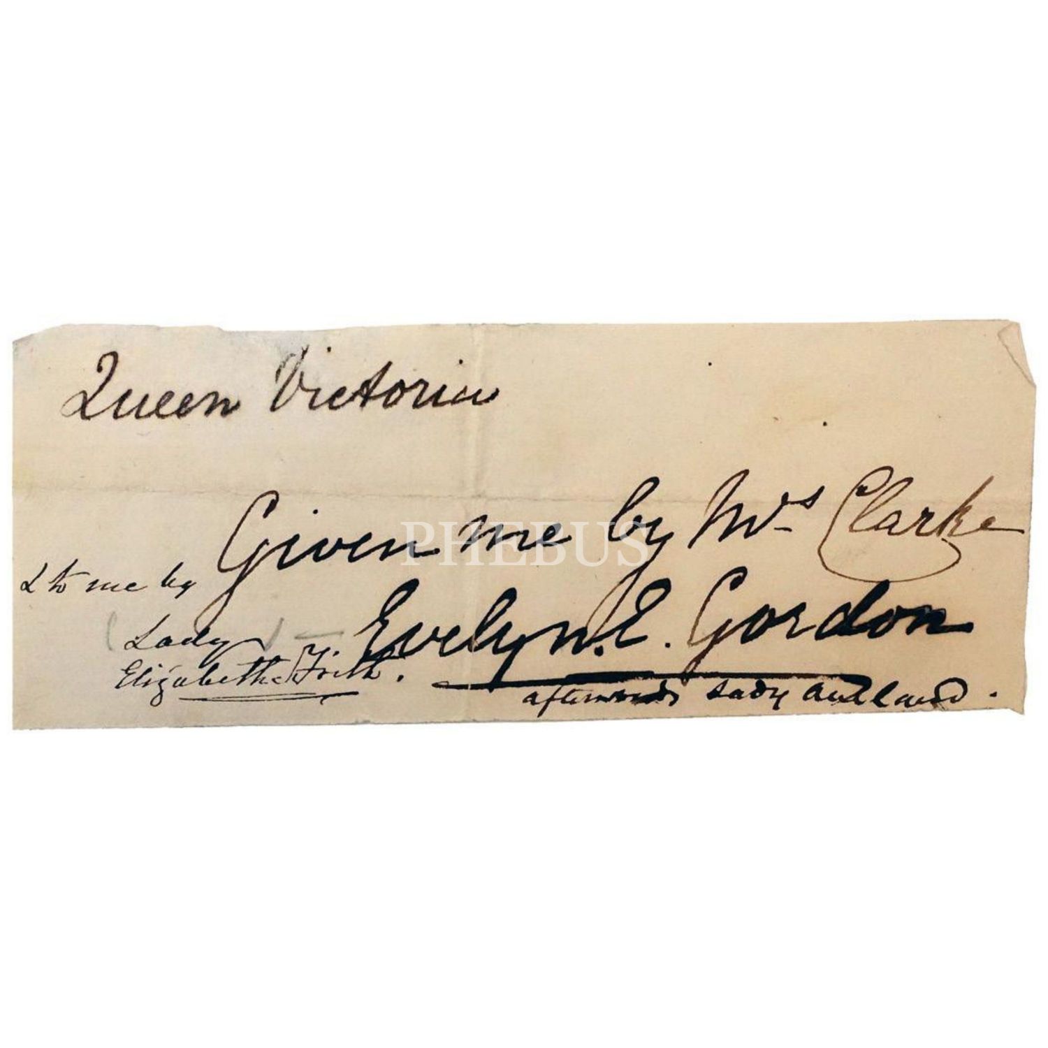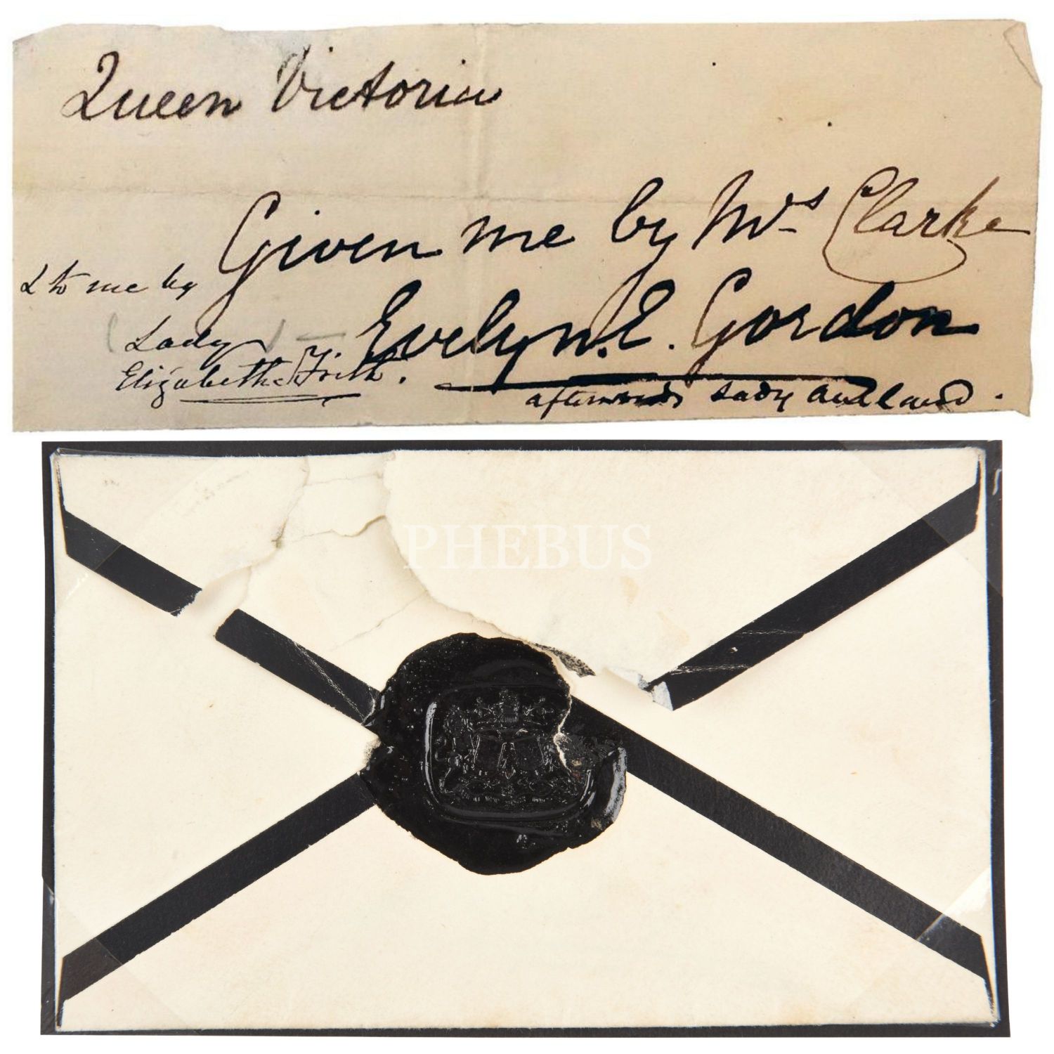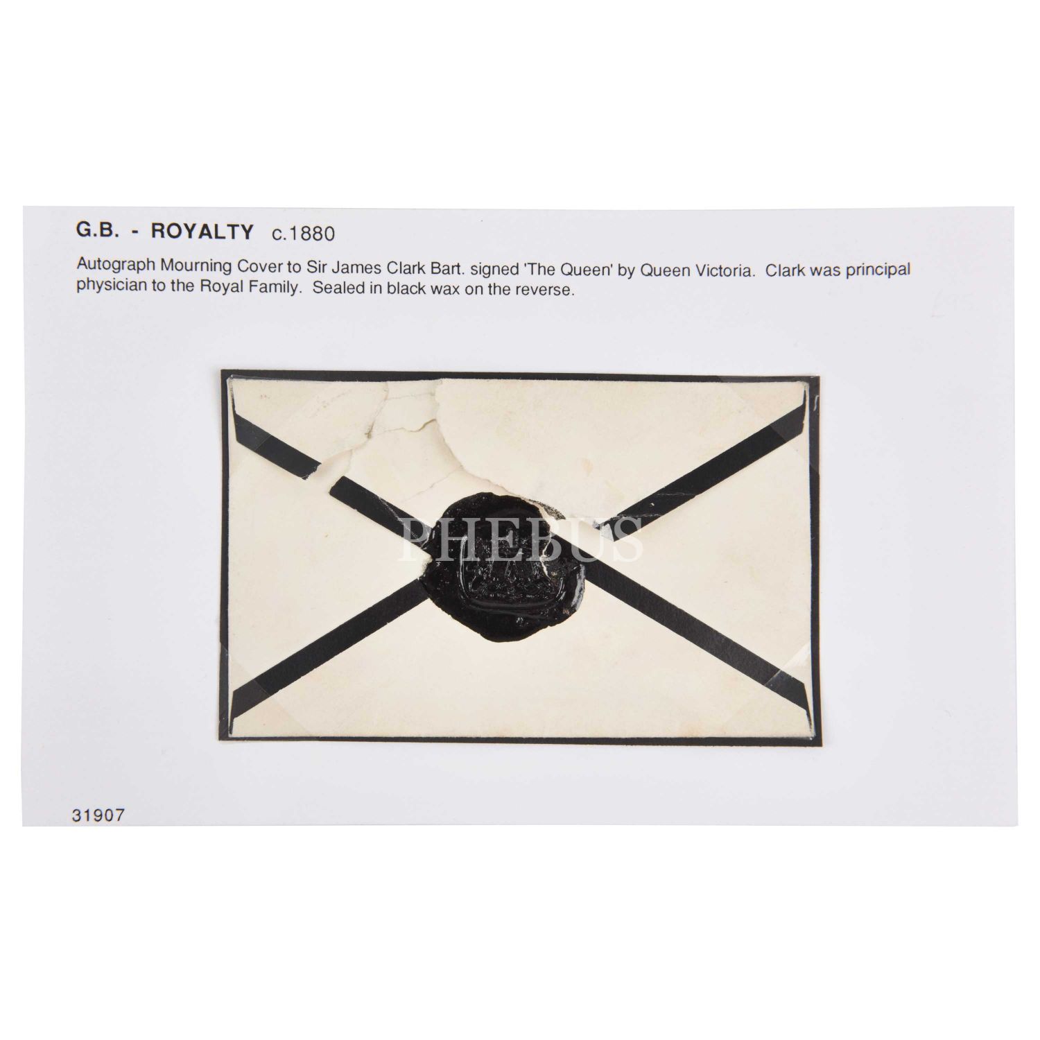 Bütün İngiliz krallarından daha uzun bir saltanat süren (63 yıl) ve saltanatı dönemi "Victoria Dönemi" olarak anılan Kraliçe Victorya´nın, "Queen Victoria" imzasıyla, daimi hekimi Sir James Clark, Bart´a gönderdiği, "mourning cover" (yas zarfı) içine konmuş el yazısı mektubu, mektup 11x5 cm, zarf 12x7,5 cm...