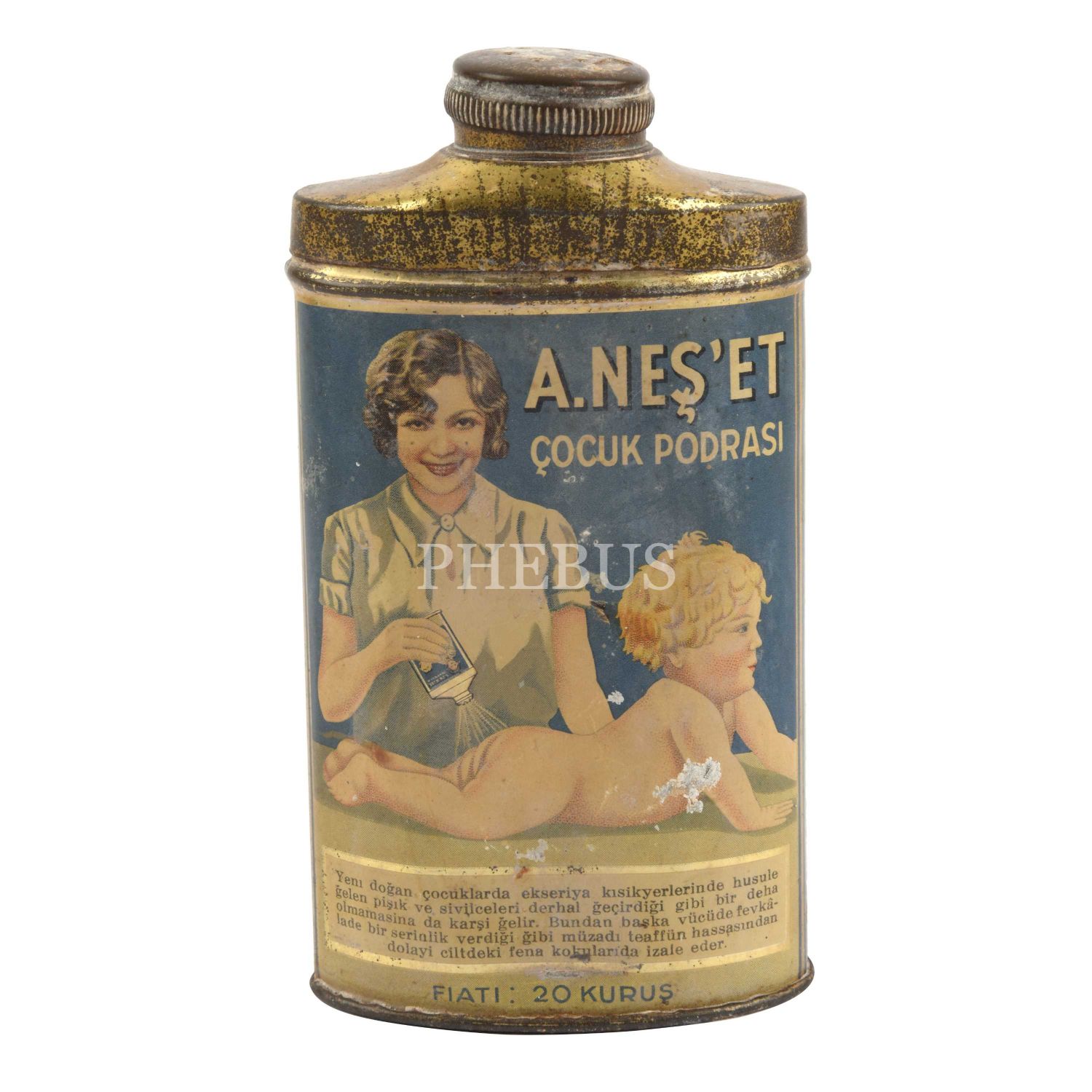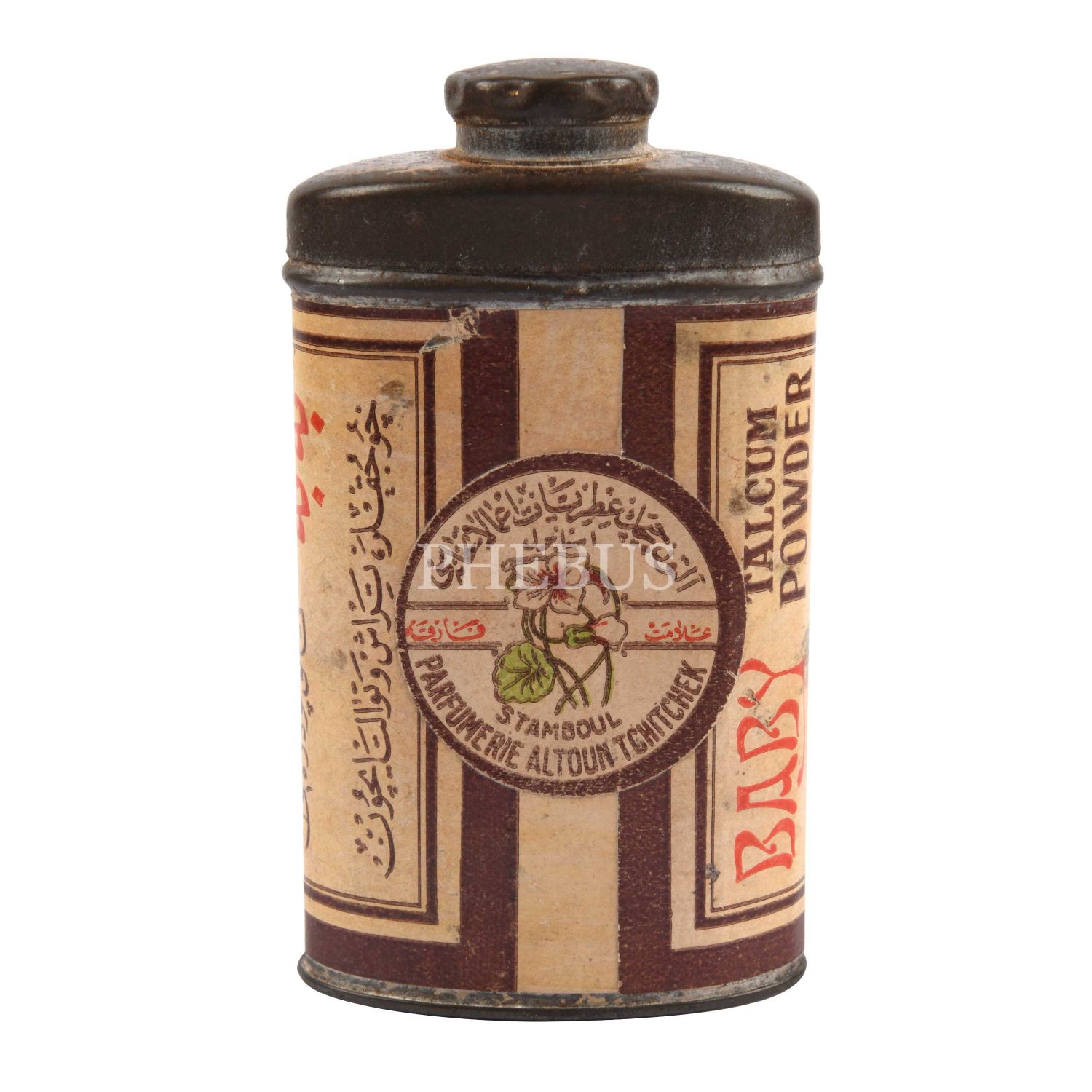 Lot içeriği: 1) "Angelique Talcum Powder - Arice & Cie., Constantinople" ibareli talk pudrası kutusu (teneke, boş) 2) Osmanlıca-Fransızca yazılı Bebe Talk Pudrası (Altın Çiçek Itriyat İmalathanesi - İstanbul) kutusu (teneke, boş) 3) Fransızca yazılı Jolie Femme Talk Pudrası (Parfumerie Altun Çiçek - İstanbul) kutusu (teneke, dolu) 4) Türkçe-Fransızca yazılı A. Neş´et Çocuk Podrası kutusu (teneke, boş) 5) Türkçe-Fransızca yazılı A. Neş´et Çocuk Pudrası kutusu (teneke, boş) 6) Türkçe-Fransızca yazılı "Tualet ve Çocuklara Mahsus" İdeal Talk Pudrası kutusu (teneke, boş) 7) Türkçe-Fransızca yazılı "Cilt Antiseptiği ve Besleyicisi" Bebi Santa Pudra kutusu (teneke, dolu) 8) Hasan Çocuk Pudrası kutusu (teneke, boş) 9) Ülkü Çocuk Pudrası kutusu (teneke, boş) 10) S. Ferid Eczacıbaşı Talk Podrası (Şifa Eczanesi - İzmir) kutusu (teneke, boş) 11) Semira Çocuk Talk Pudrası kutusu (karton, dolu) 12) Bebe Talk Pudrası kutusu (teneke, dolu) 13) Reks Çocuk Pudrası kutusu (teneke, boş) 14) Sıhhî Bebe Talk Podrası (Aris - İstanbul) kutusu (teneke, boş) 15) Türkçe-Fransızca yazılı Pertev Talk Pudrası kutusu (teneke, dibi dolu) 16) Biri Osmanlıca-Fransızca, dördü Türkçe-Fransızca yazılı beş adet Diapasme Pertev Çocuk Pudrası kutusu (teneke, boş) 17) Tedi Çocuk Talk Podrası kutusu (teneke, boş) 18) İkisi teneke, üçü alüminyum beş adet Fredo Talk Pudrası kutusu (teneke kutulardan biri doludur)