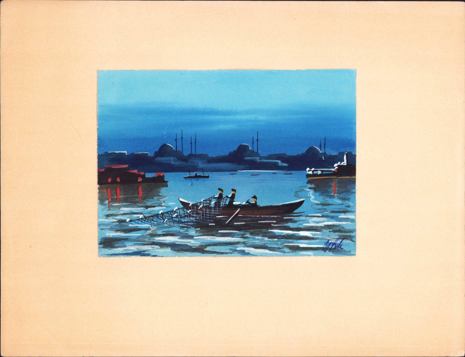 İstanbul, sanatçı ıslak imzalı suluboya resim, 17x13