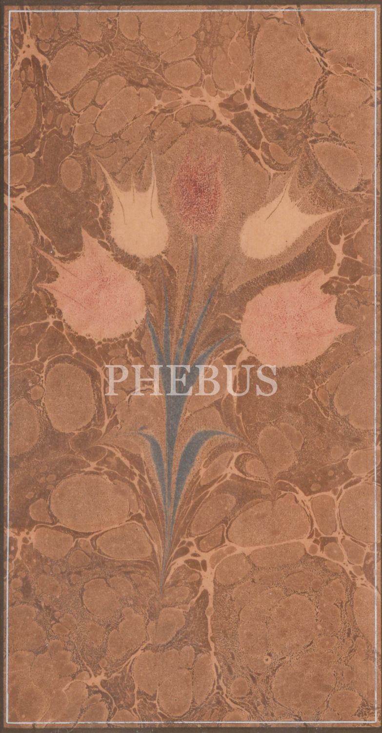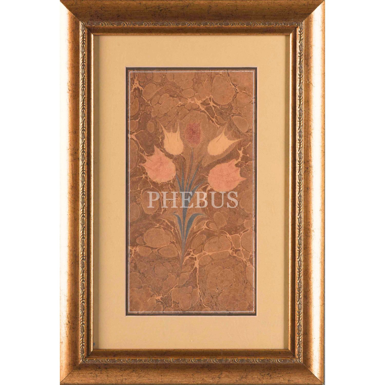 Necmettin Okyay beş çiçekli lale ebrusu, ebru ölçü: 28x15 cm, çerçeve ölçü: 43x30 cm...