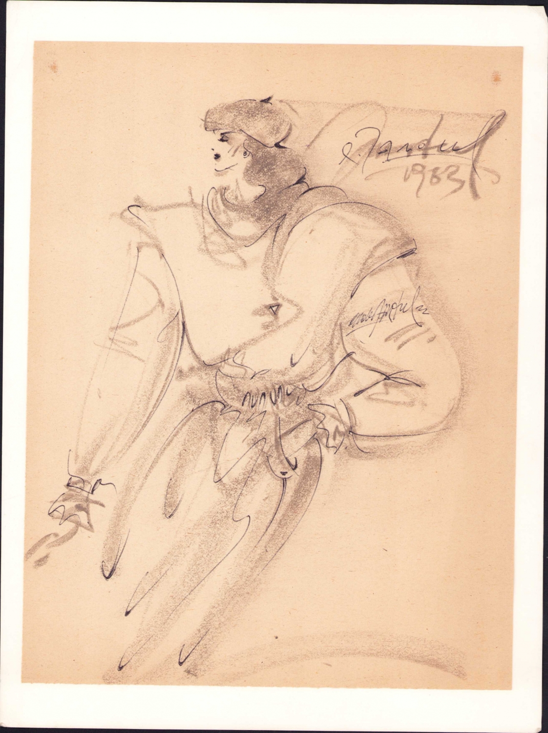 Ressam Ender Dandul 1983 imzalı pastel boya resim, moda çizimi 19x25 cm