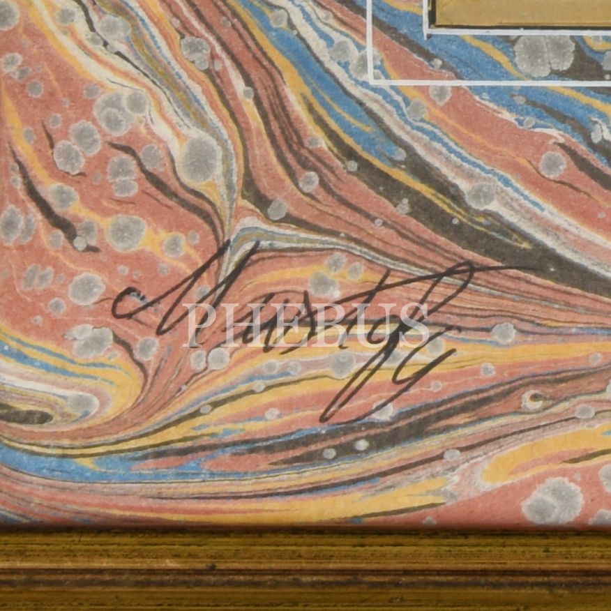 Eserin pervazında imzalı bir Mustafa Düzgünman ebrusu bulunmaktadır.