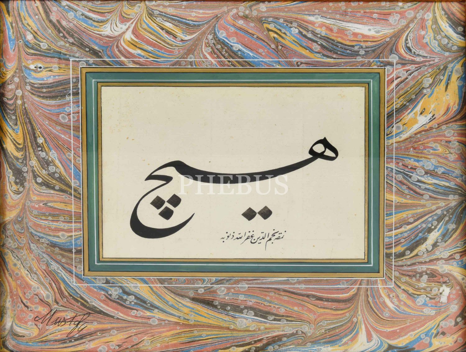 Necmeddin Okyay ketebeli celi talik levha, “Hiç”, çerçeve ölçü: 36x31 cm...
