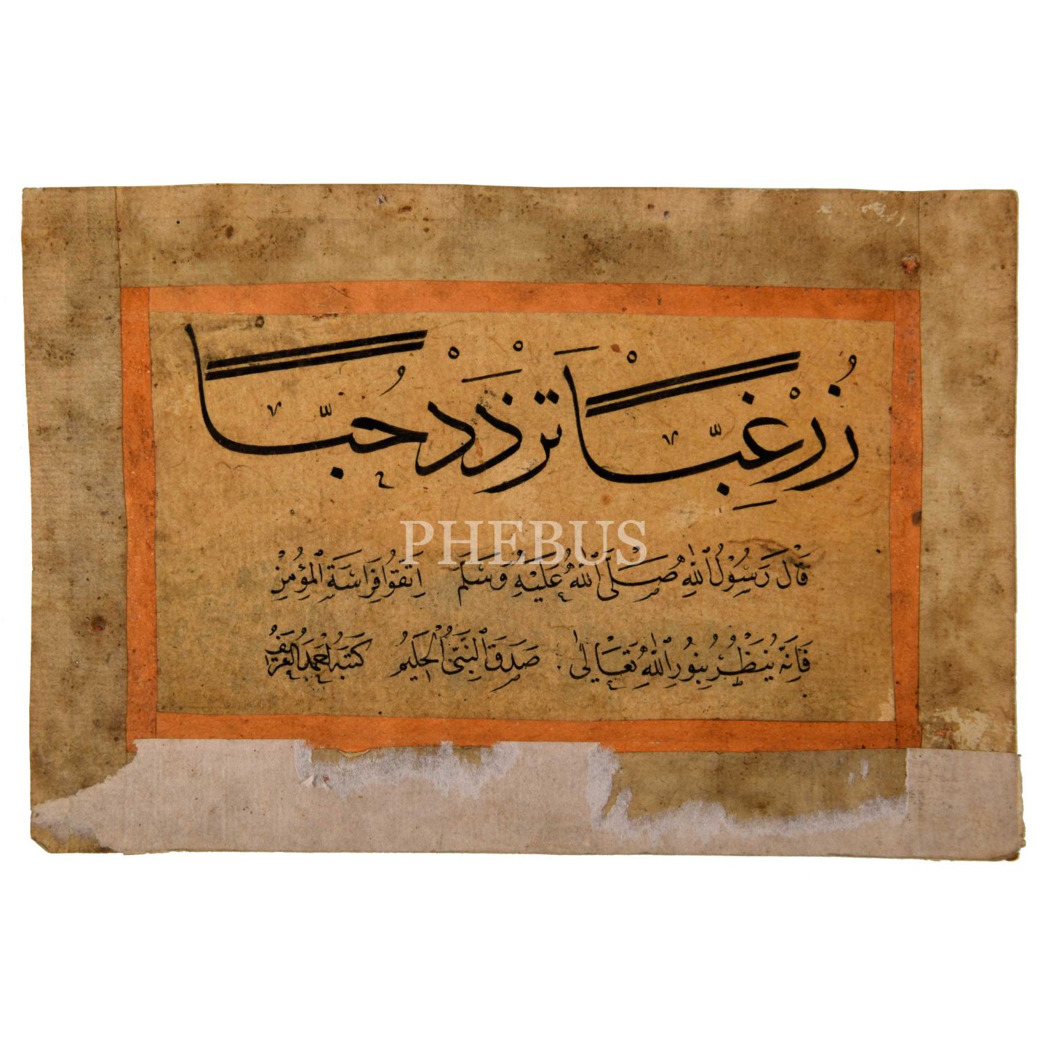 Ahmed el-arîf... ketebeli erken dönem hoca işi sülüs-nesih hadis-i şerif kıtası, 17x12 cm...