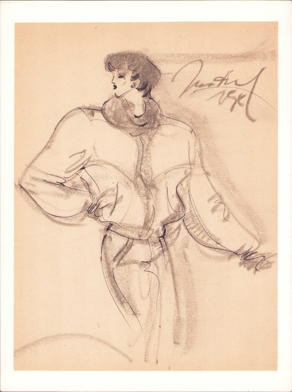 Ressam Ender Dandul 1983 imzalı pastel boya resim, moda çizimi 19x25 cm