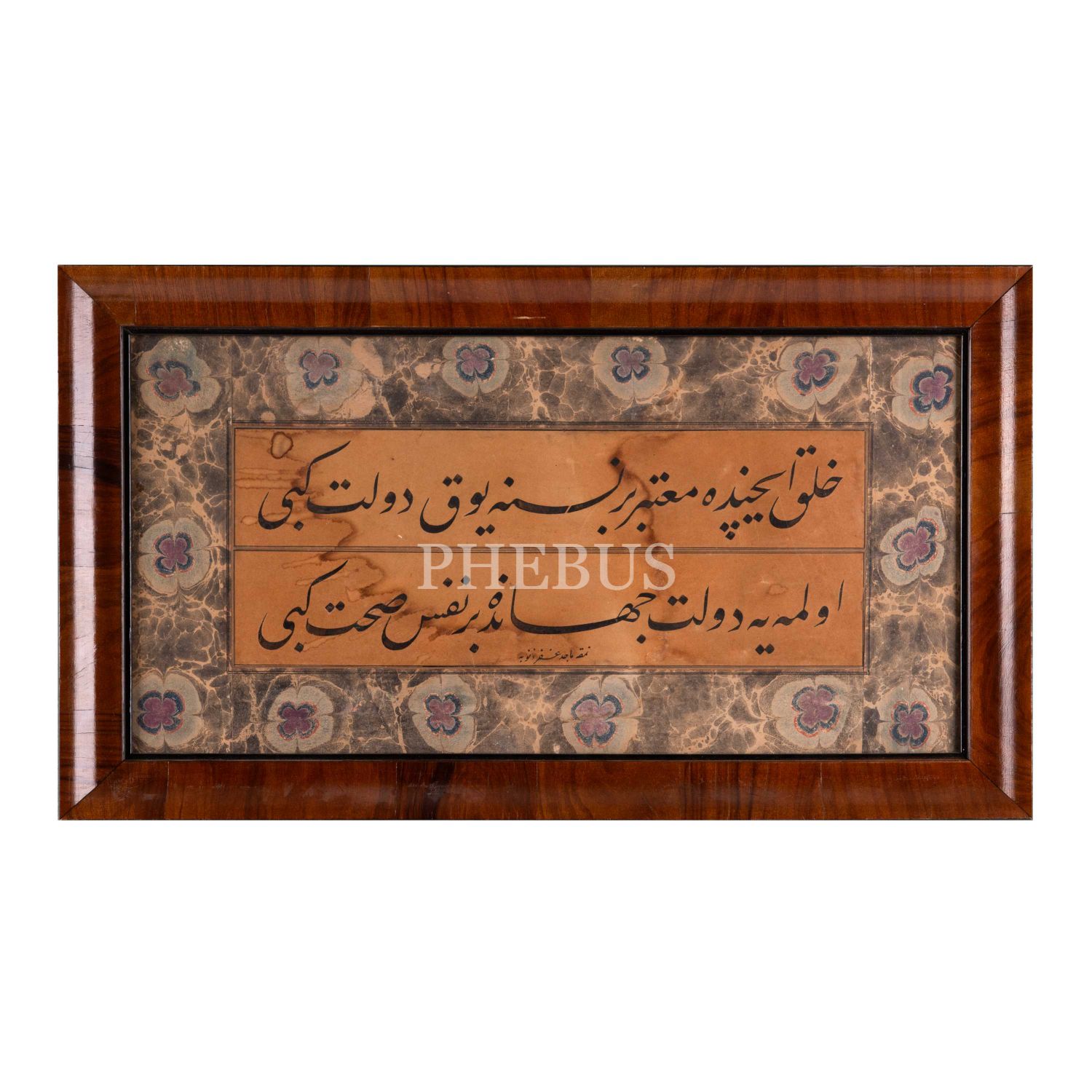 Macid Ayral ketebeli celi talik beyit, çerçeve içi ölçüsü: 50x25 cm...