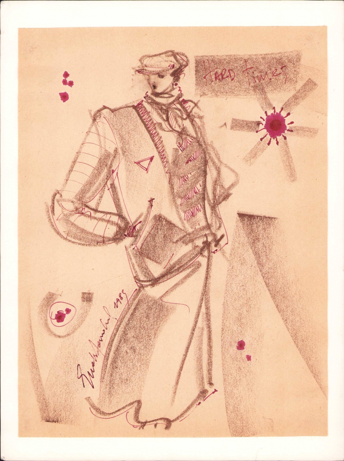 Ressam Ender Dandul 1983 imzalı pastel boya resim, moda çizimi 19x25 cm
