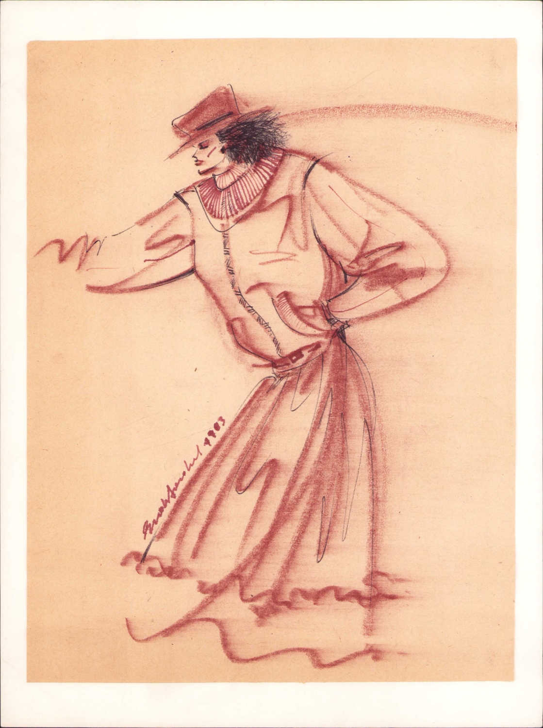Ressam Ender Dandul 1983 imzalı pastel boya resim, moda çizimi 19x25 cm