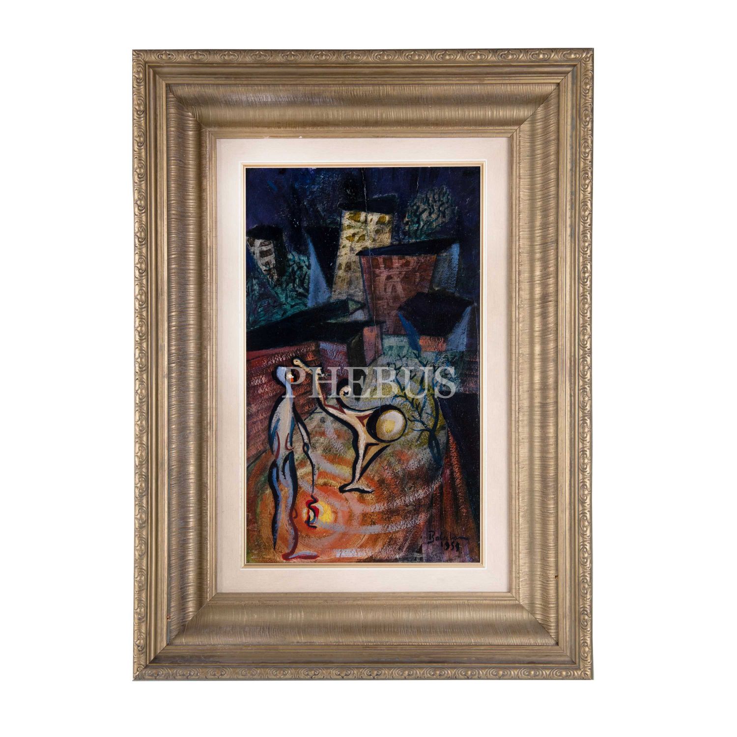 İbrahim Balaban´dan imzalı resim, "Ramazan Davulcusu", mukavva üzerine yağlı boya, sertifikalı, resim 29,5x49,5 cm, çerçeve 53x73 cm...