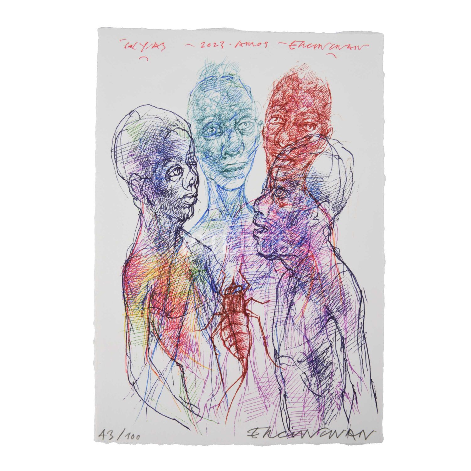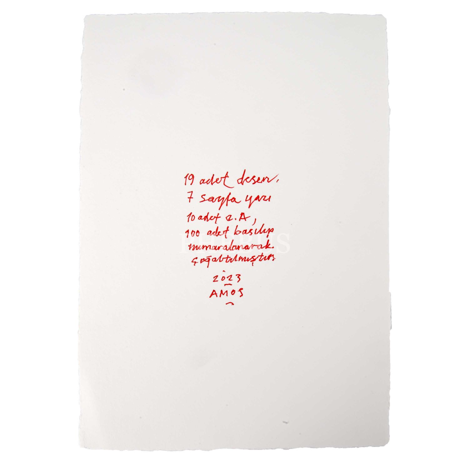 Ergin İnan´ın EArt Galeri´de düzenlediği "Amos" sergisi için yalnızca 100 adet hazırlanan özel koleksiyon serisi, 43/100, kutu 41x51x5 cm, yapraklar 21x30 cm...