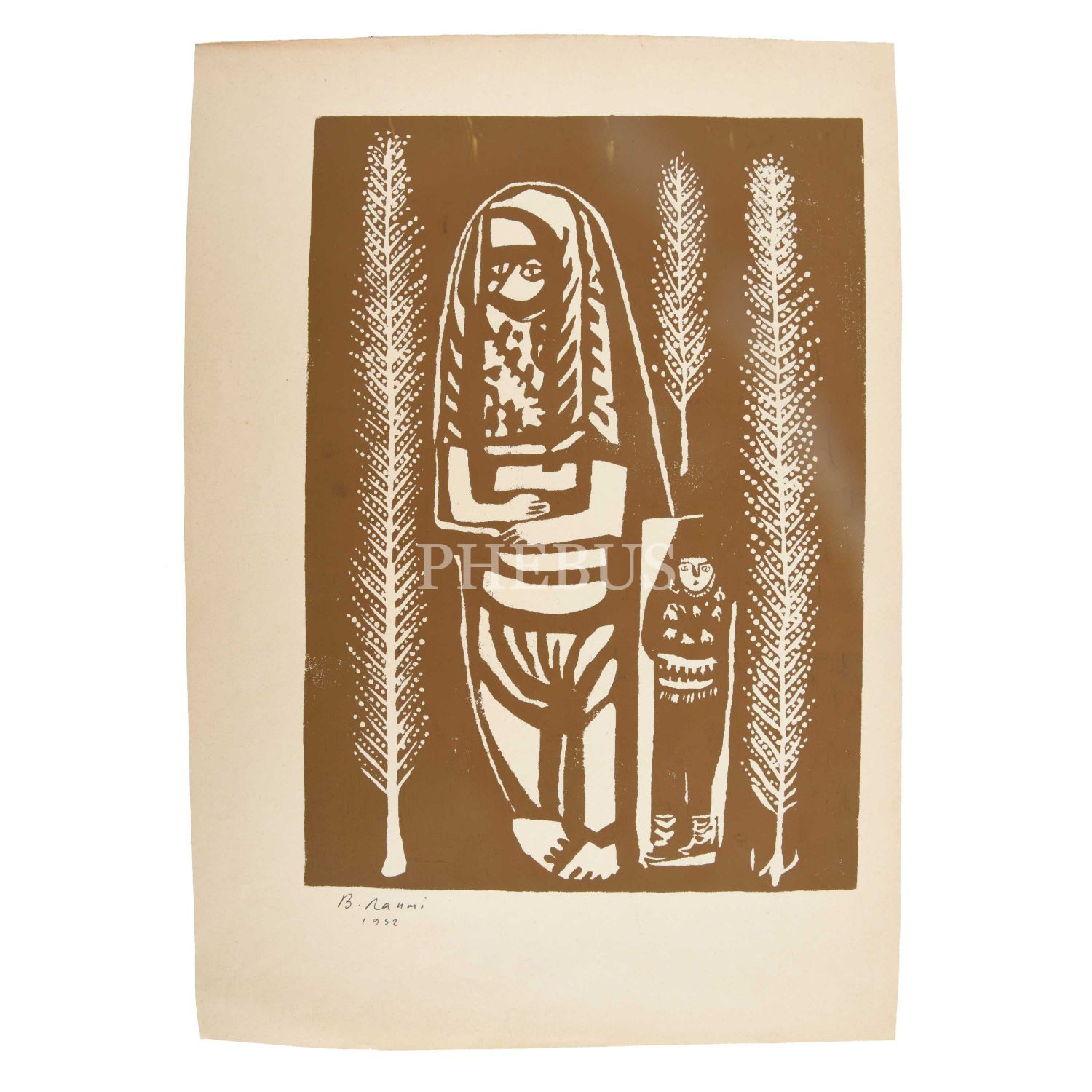Bedri Rahmi Eyüboğlu´nun ıslak imzasıyla, "Anne ve Çocuk" serisinden bir serigrafi baskı, 1952, 32x45 cm...
