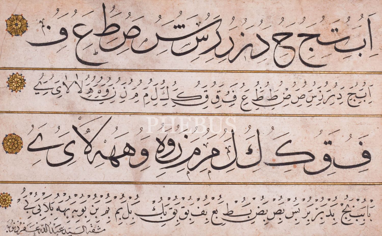 Seyyid Abdullah Efendi´nin sülüs-nesih hurufat meşki, çerçeve içi çlçü: 31x24 cm...