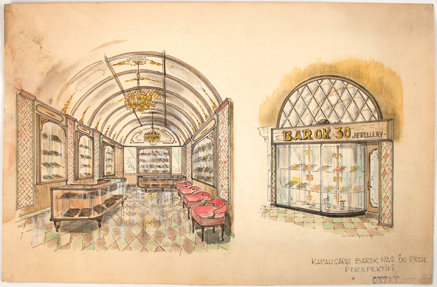 Suluboya resim, Kapalıçarşı Barok Mağazası, ön proje perspektifi, 50x32 cm