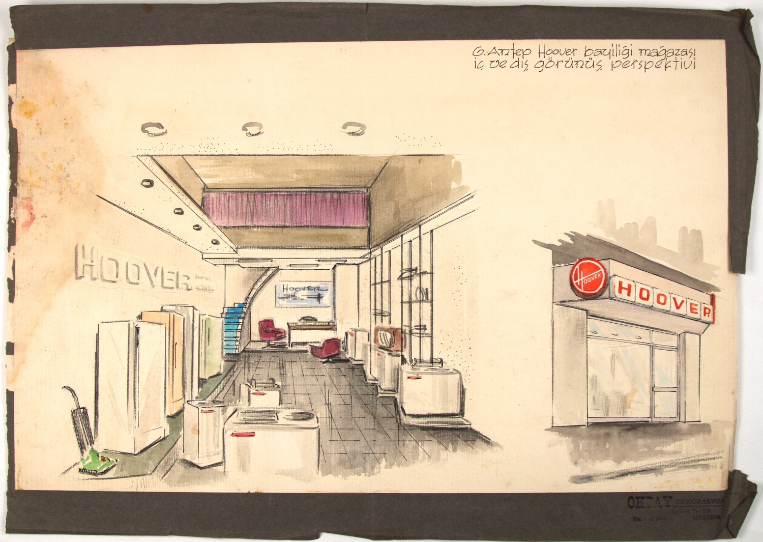 Suluboya resim, G. Antep Hoover bayiliği mağazası iç ve dış görünüş perspektif, 50x35 cm