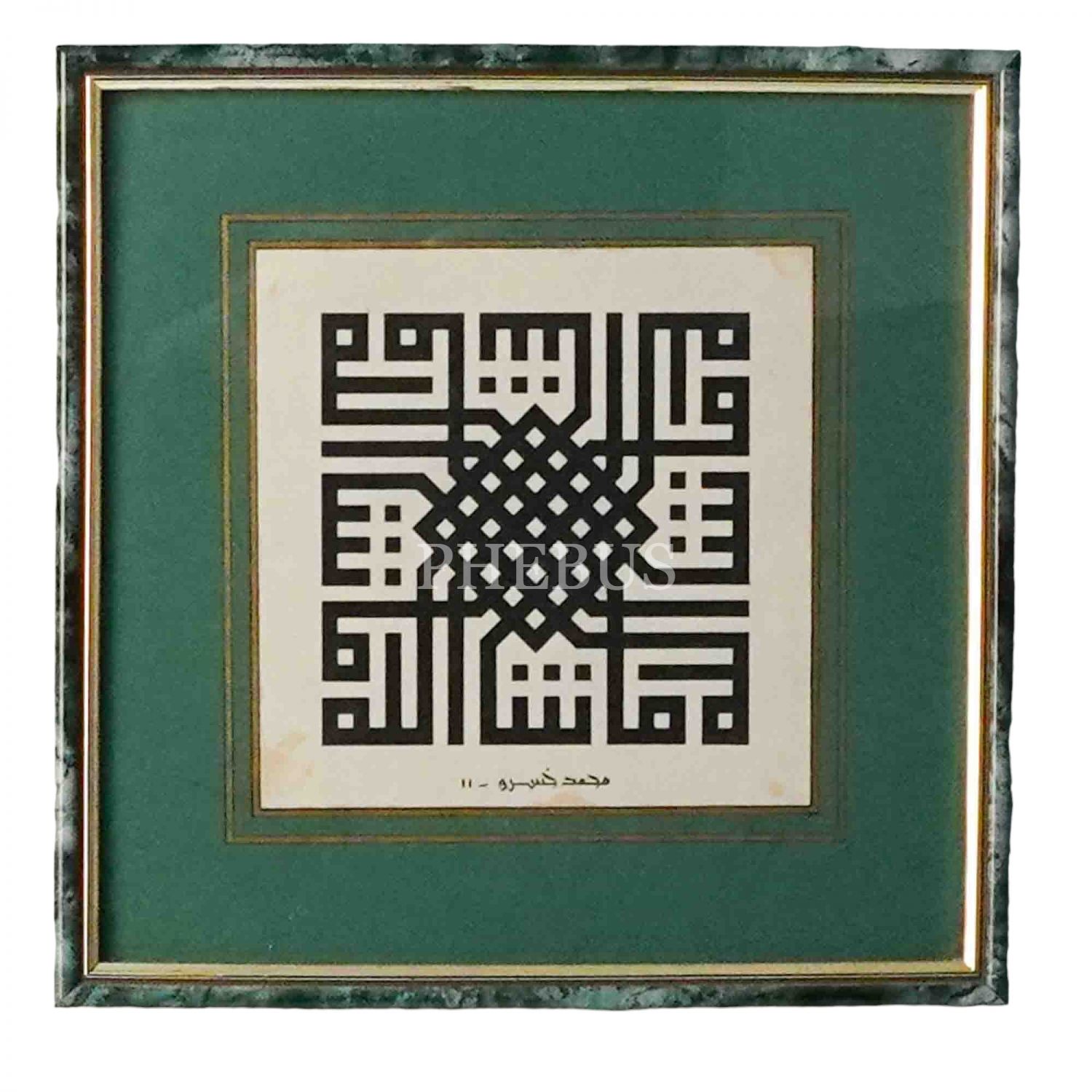 Mehmet Hüsrev (Prof. Dr. Hüsrev Subaşı) ketebeli kufi “Maaşallah” levhası, 1411 cm, 30x30 cm...