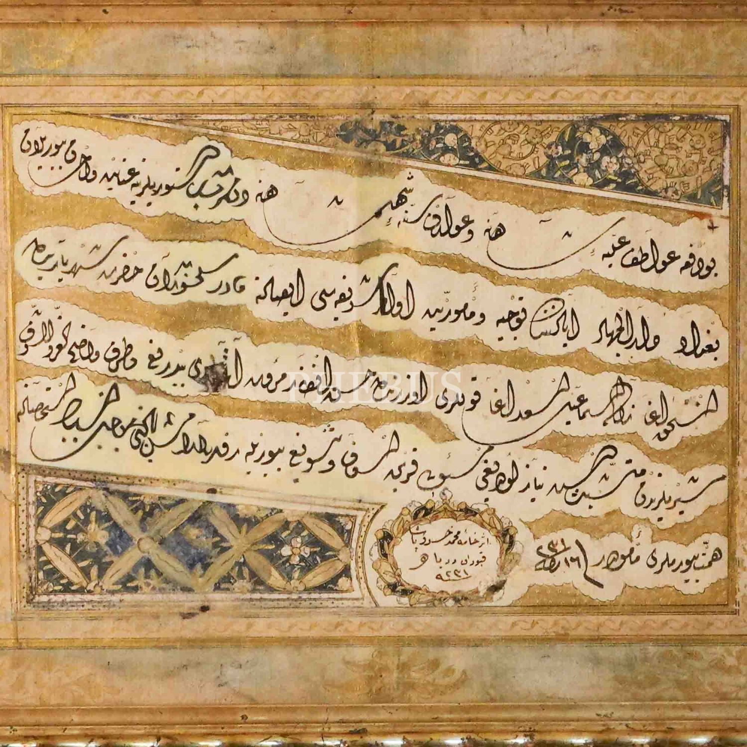 Kapudan-ı Deryâ Mehmed Hüsrev Paşa ketebeli divânî kıta, 1231 tarihli, 28x36 cm...