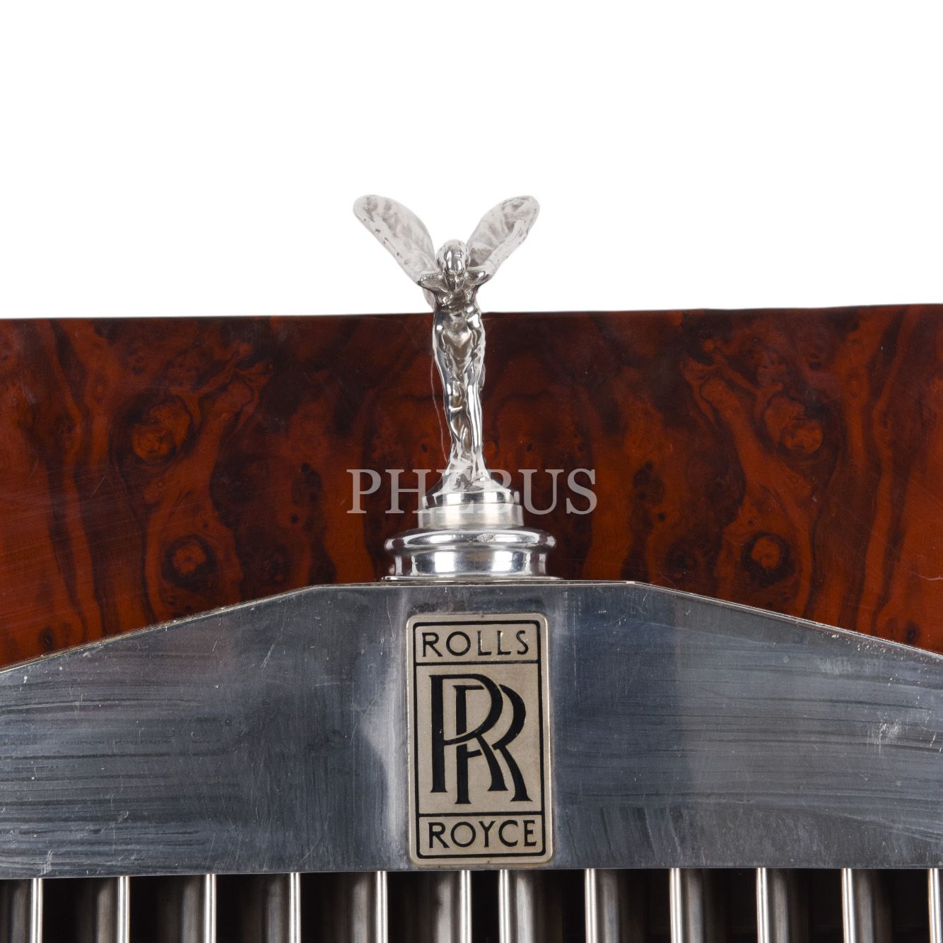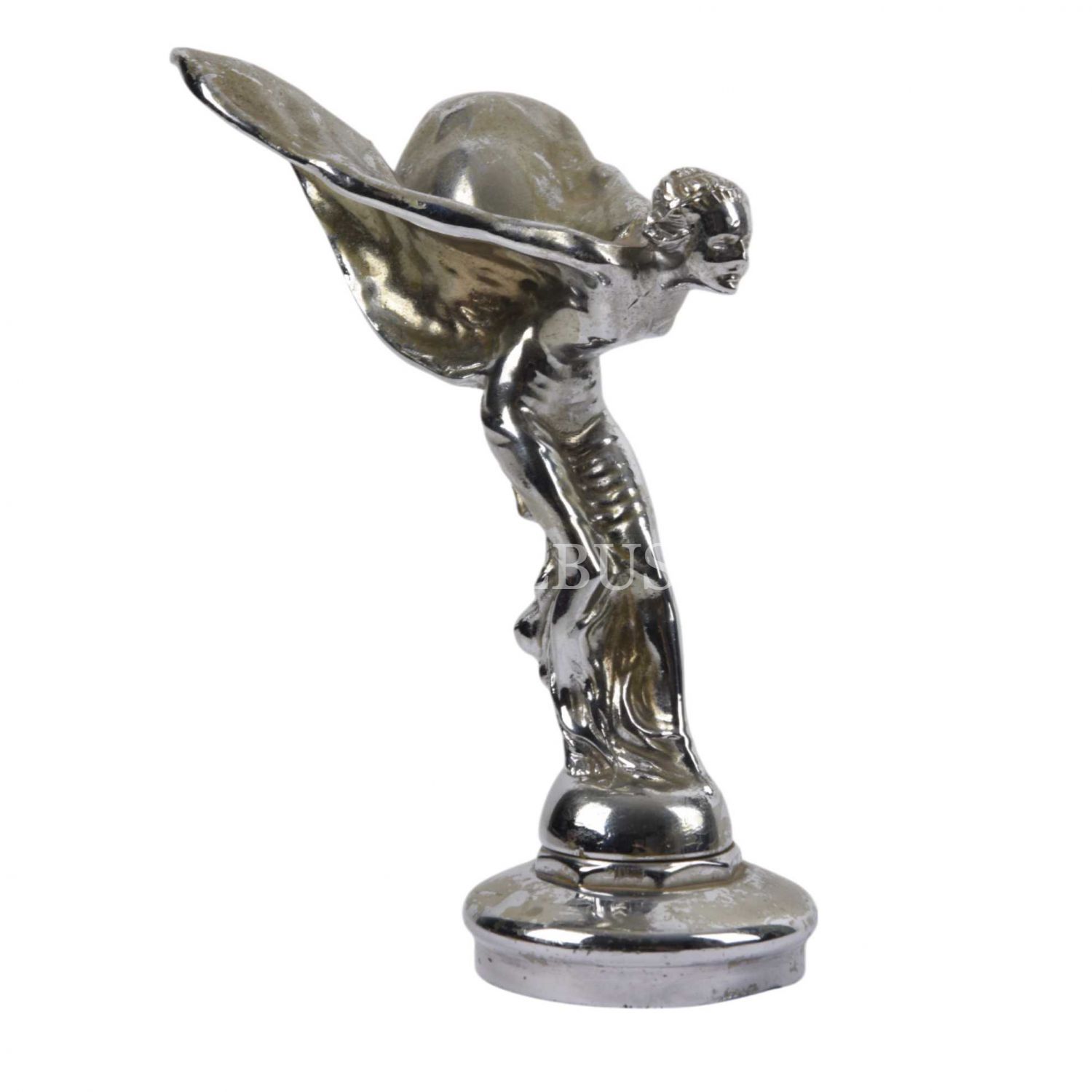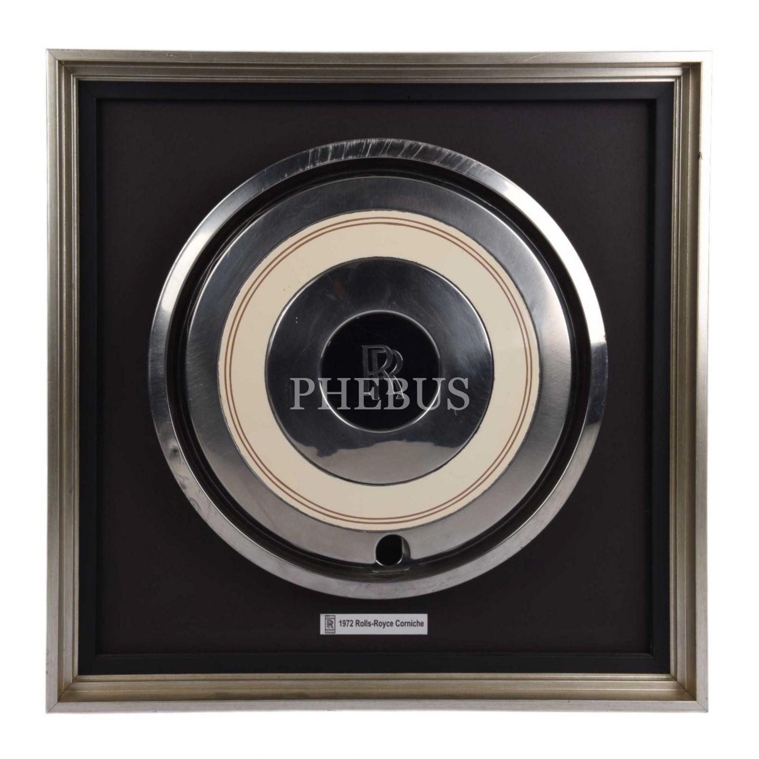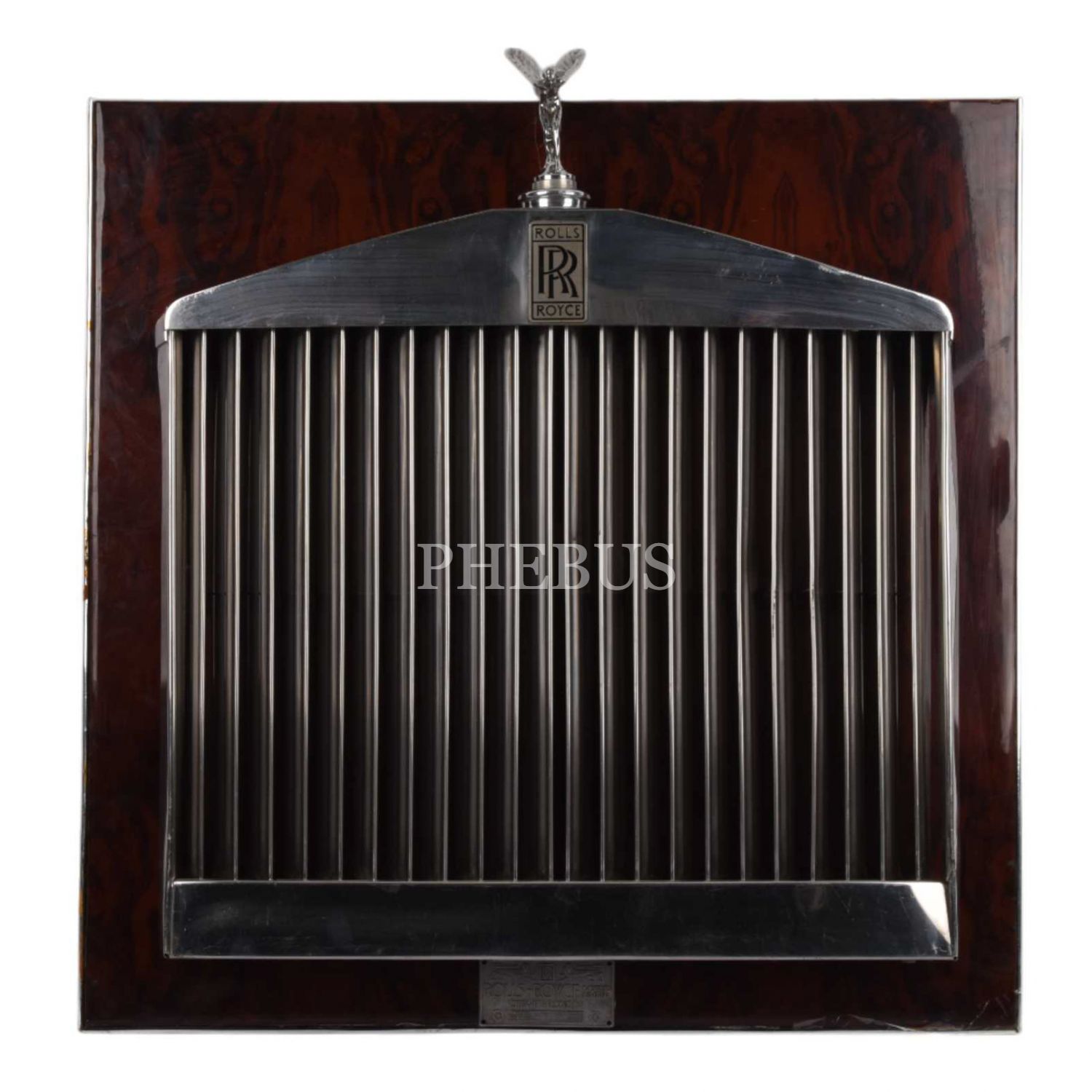 1972 Rolls-Royce Corniche ön radyatör ızgarası, jantı ve Rolls Royce'un ikonik amblemi ‘Spirit Of Ecstasy’ (Coşkunun Ruhu), ızgara 56x67x8 cm, jant (çap) 42 cm, amblem 18x10x6 cm...