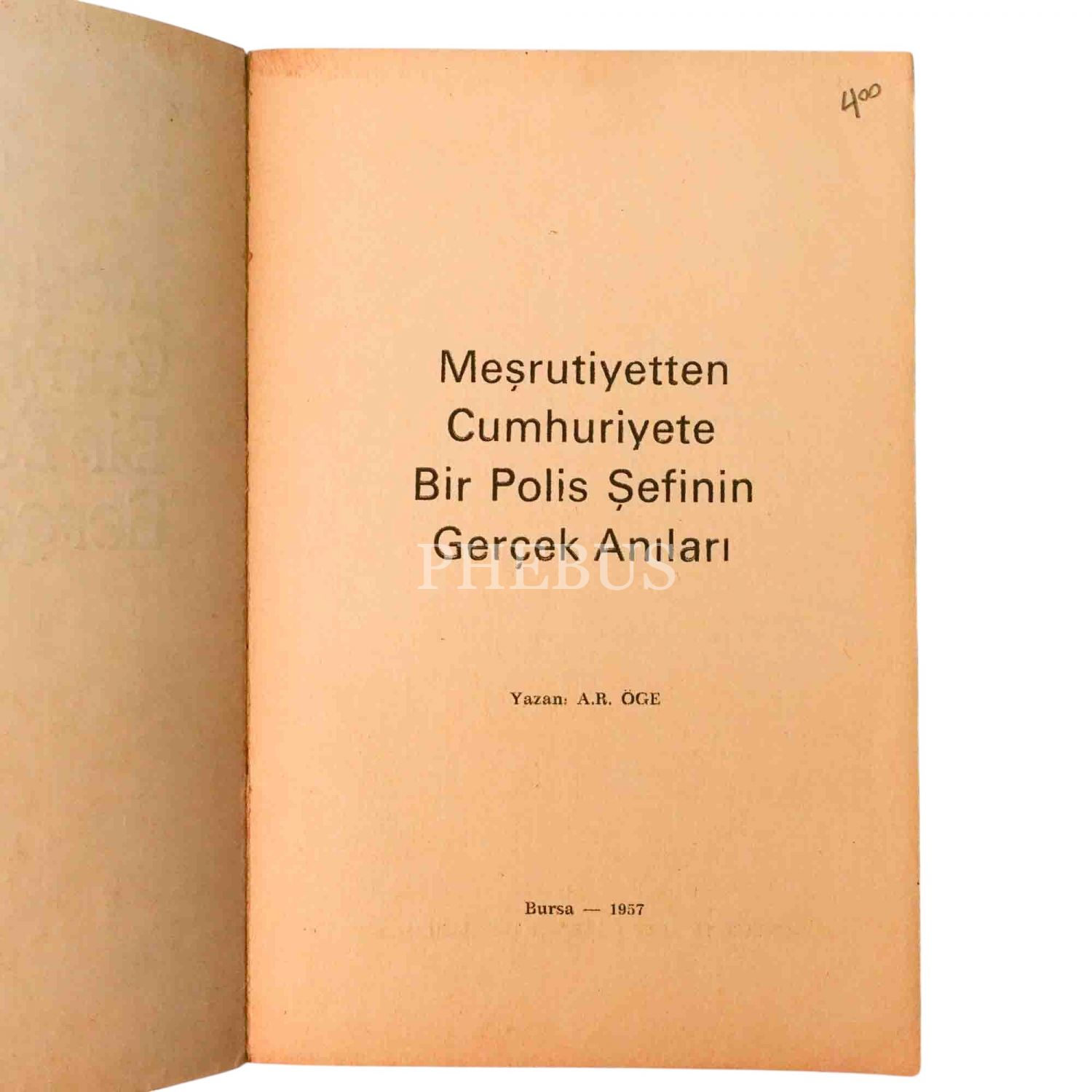 MEŞRUTİYETTEN CUMHURİYETE BİR POLİS ŞEFİNİN GERÇEK ANILARI, Ali Rıza Öge, 1982, Günlük Ticaret Gazetesi Tesisleri, 391 sayfa, 14x20 cm...