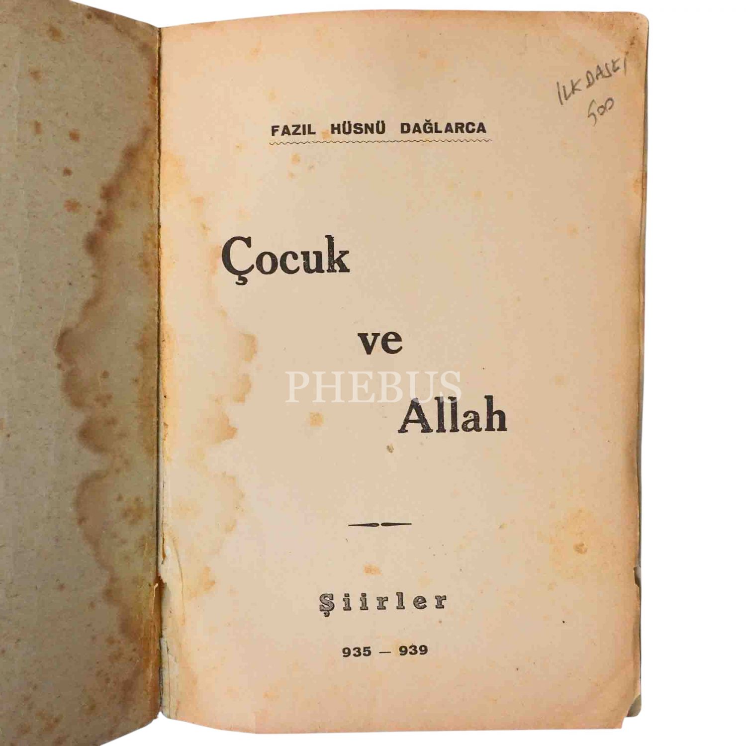 ÇOCUK VE ALLAH, Fazıl Hüsnü Dağlarca, 1940, Bozkurt Basımevi, 285 sayfa, 14x20 cm...