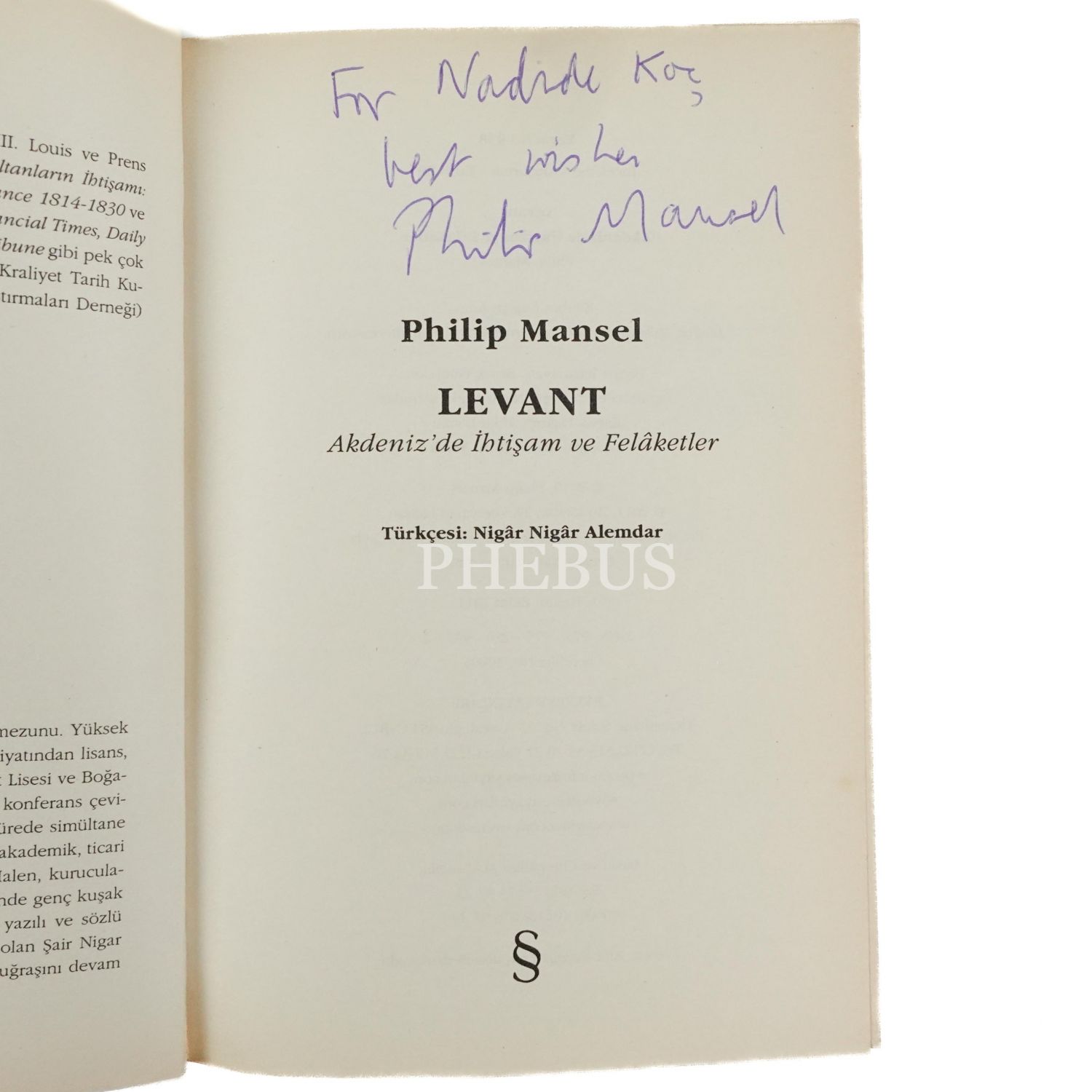 Philip Mansel´den ithaflı ve imzalı...