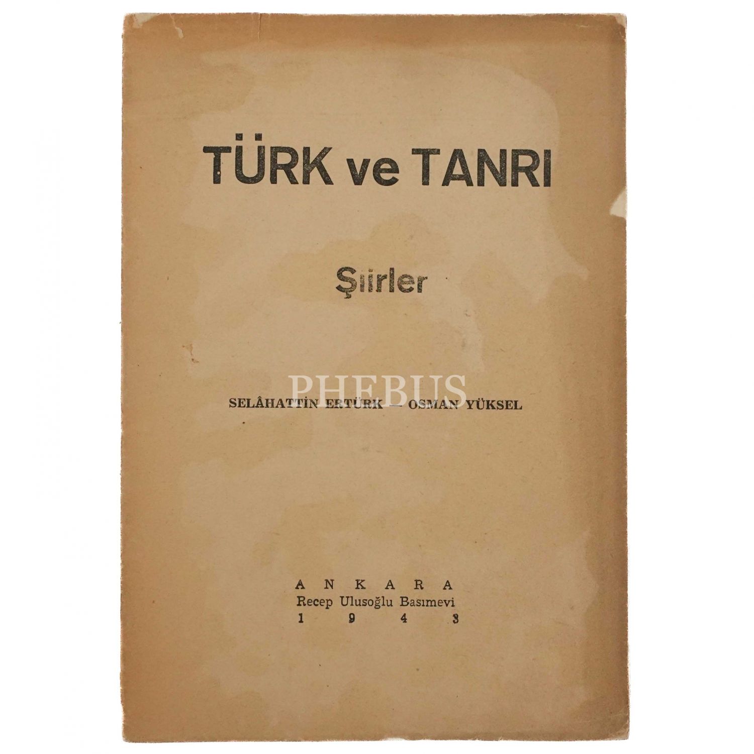 TÜRK VE TANRI (Şiirler), Selâhattin Ertürk - Osman Yüksel (Serdengeçti), 1943, Recep Ulusoğlu Basımevi, 32 sayfa, 14x20 cm...