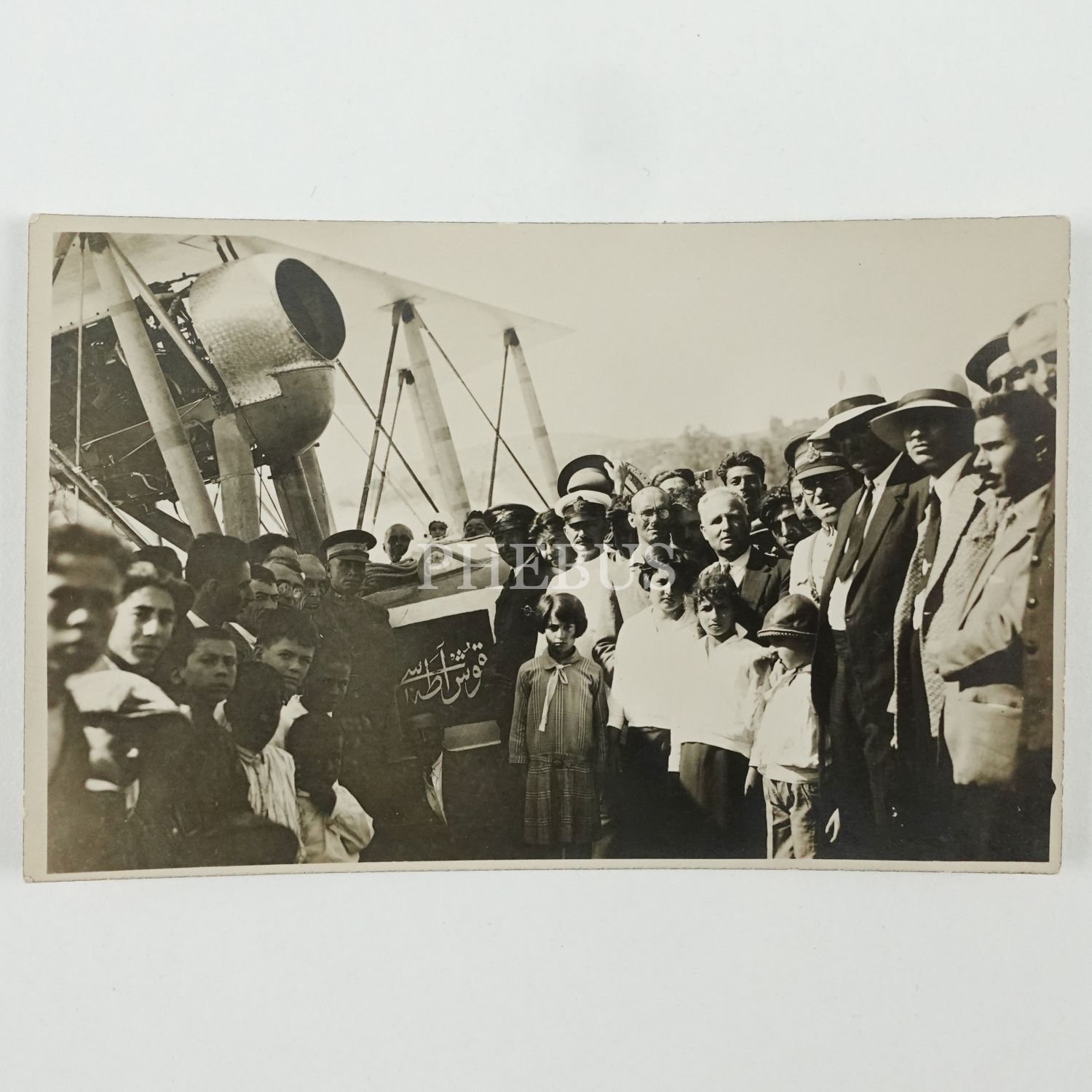 Fotoğrafın arka yüzüne düşülen Osmanlıca not: "Kuşadası Tayyaresinin 15 haziran 1928 tarihindeki isim konma merasimi intibahatından."
