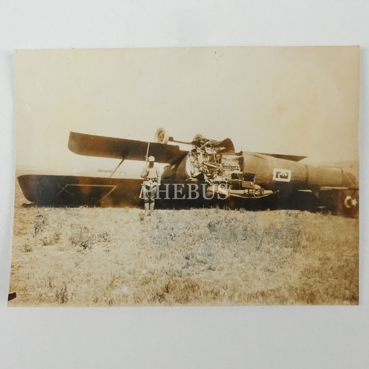 Kaza yaparak ters dönmüş Konya uçağı önünde nöbet tutan er, 10x8 cm...