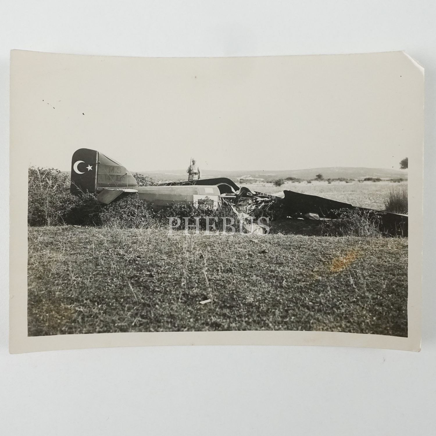 Kaza yapmış bir Türk uçağı önünde nöbet tutan er, 18x13 cm...