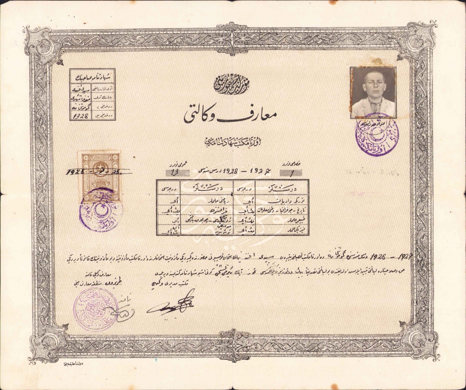 Osmanlıca Maarif Vekaleti Orta Mektep Şehadetnamesi, 1928, 28x23 cm
