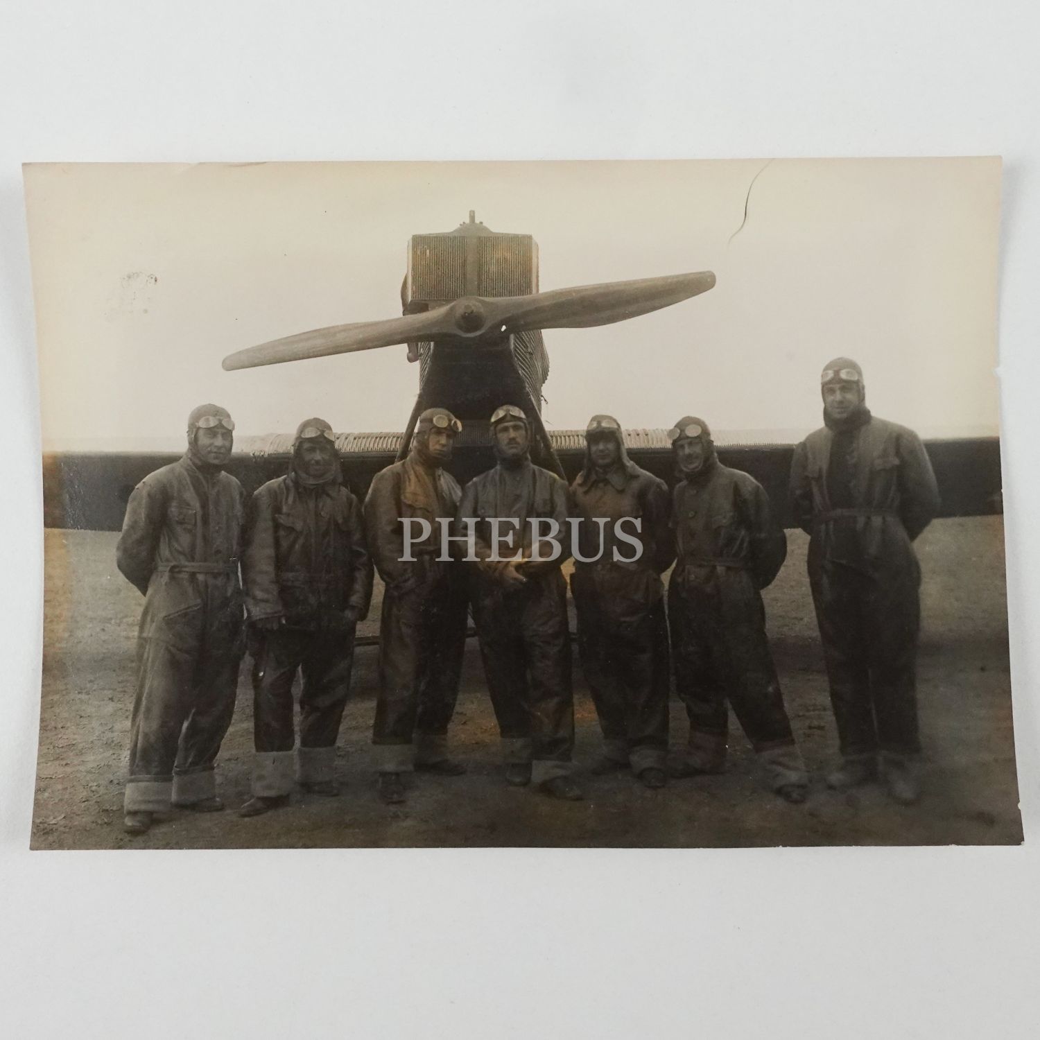 Tam teçhizatlı Türk pilotları, eğitim uçağının önünde, 16,5x12 cm...
