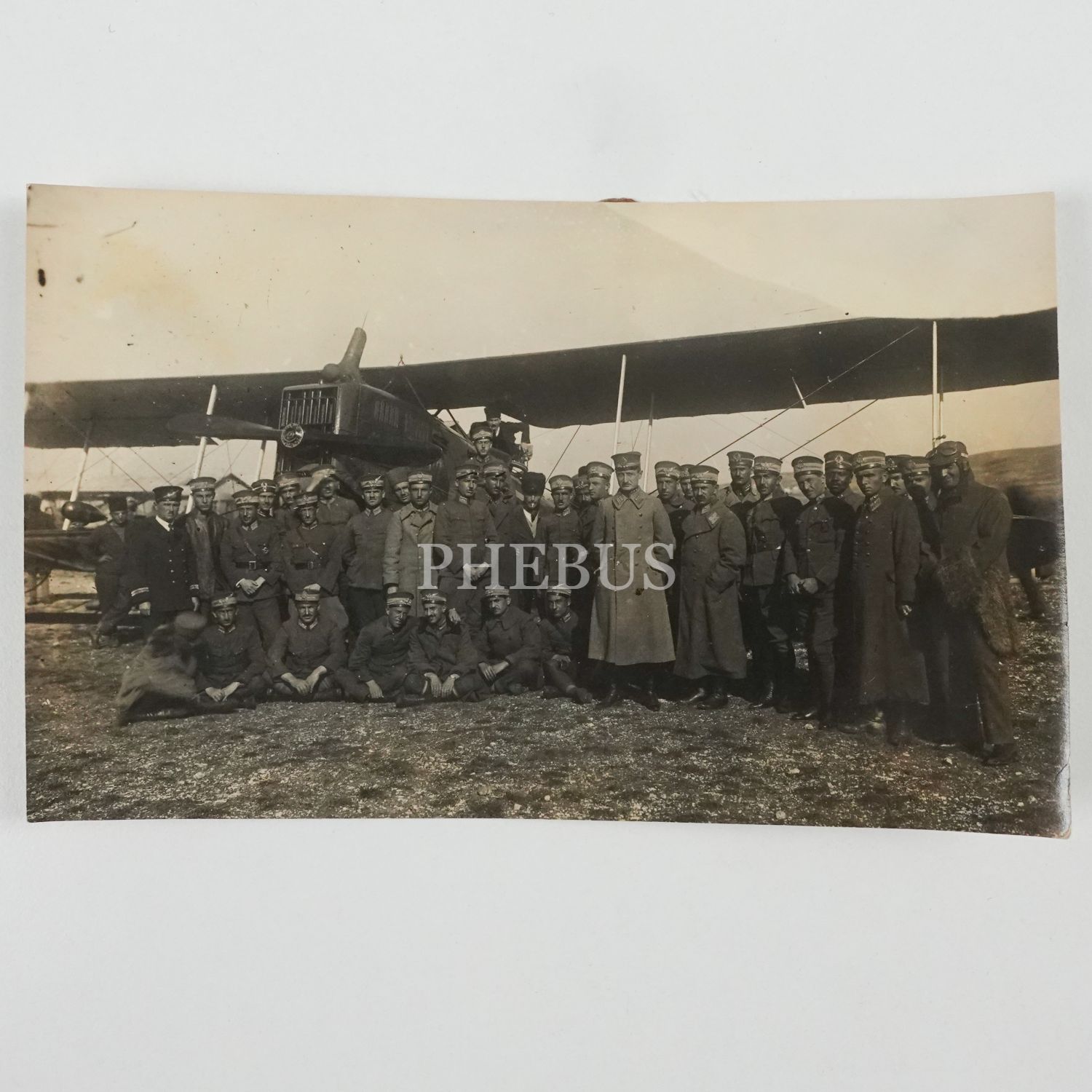 Üst rütbeli Türk subaylarının hava üssü ziyaretinde bir uçağın önünde aldırdıkları hatıra fotoğrafı, 16,5x10 cm...