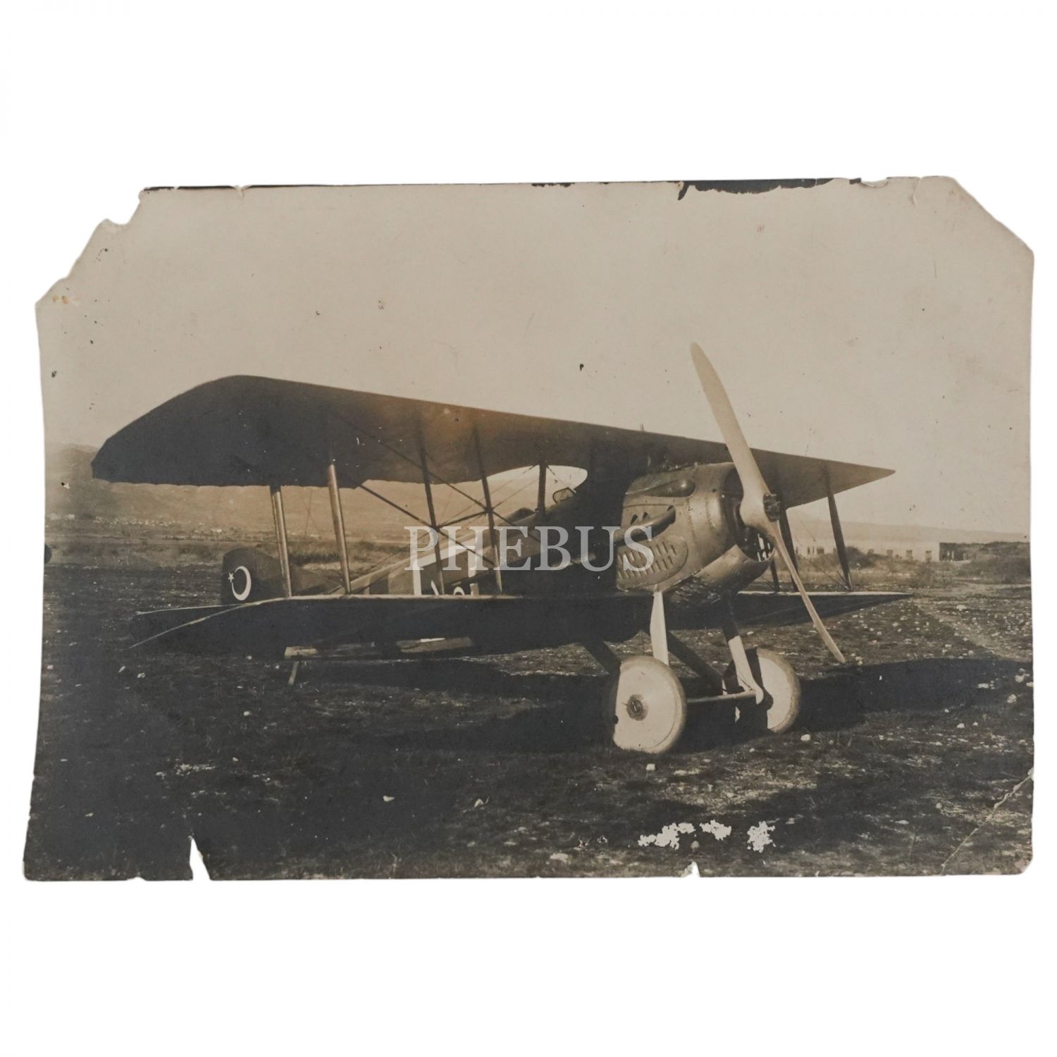 "105" gövde numaralı ve ay yıldız kuyruklu Türk uçağı, 12x9 cm...