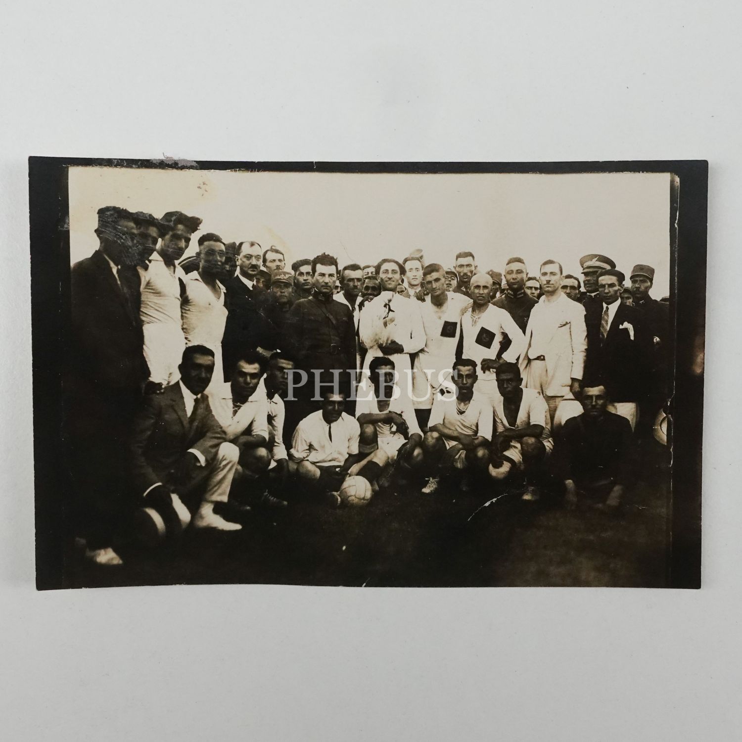 Aralarında Fevzi Uçaner´in de yer aldığı, Türk Hava Kuvvetleri bünyesinde oluşturulan futbol takımında yer alan pilot adaylarının hocaları olan Türk subaylarıyla aldırdıkları toplu hatıra fotoğrafı, 14x9 cm...