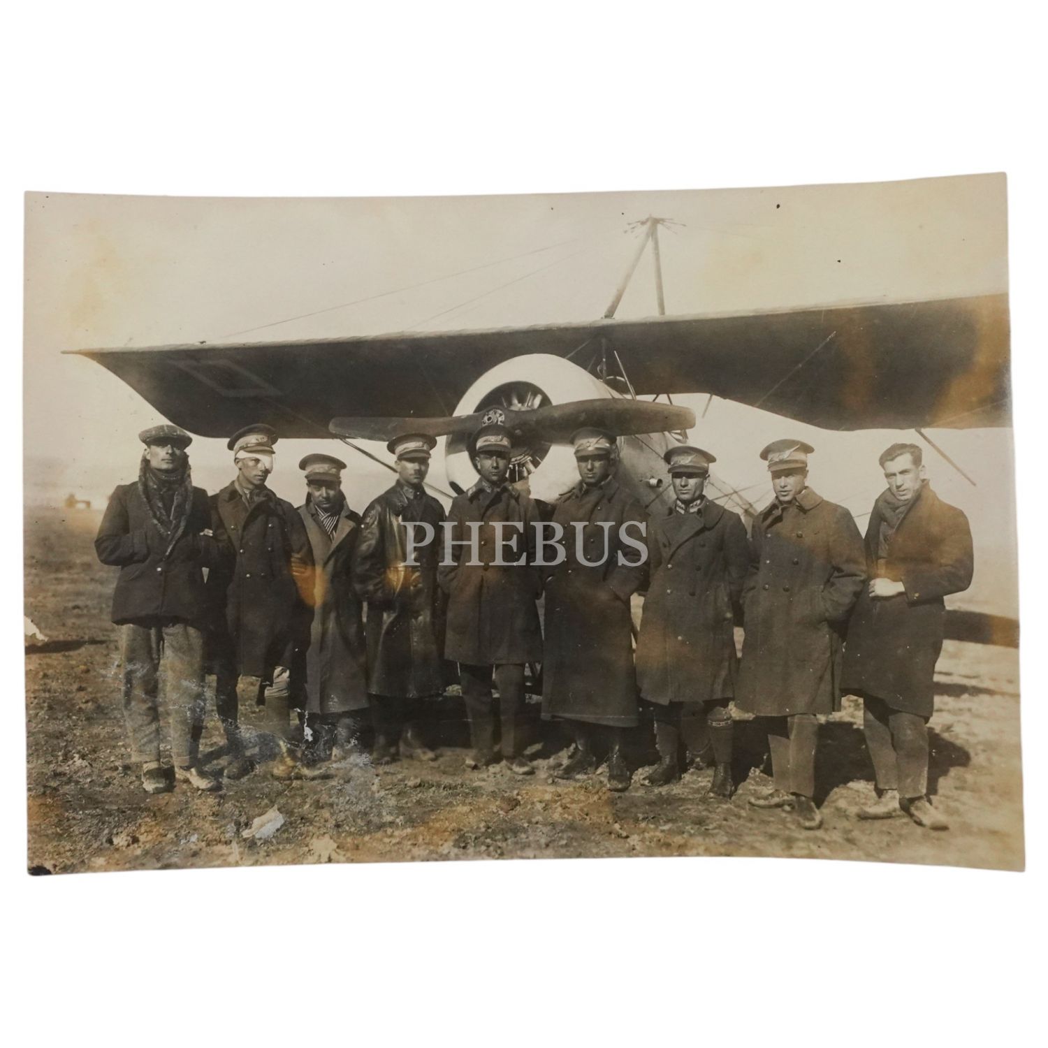 Aralarında İhsan Orgun ve Gavsi Uçagök´ün de yer aldığı Türk subaylarının, bir uçak önünde aldırdığı toplu hatıra fotoğrafı, 17x12 cm...