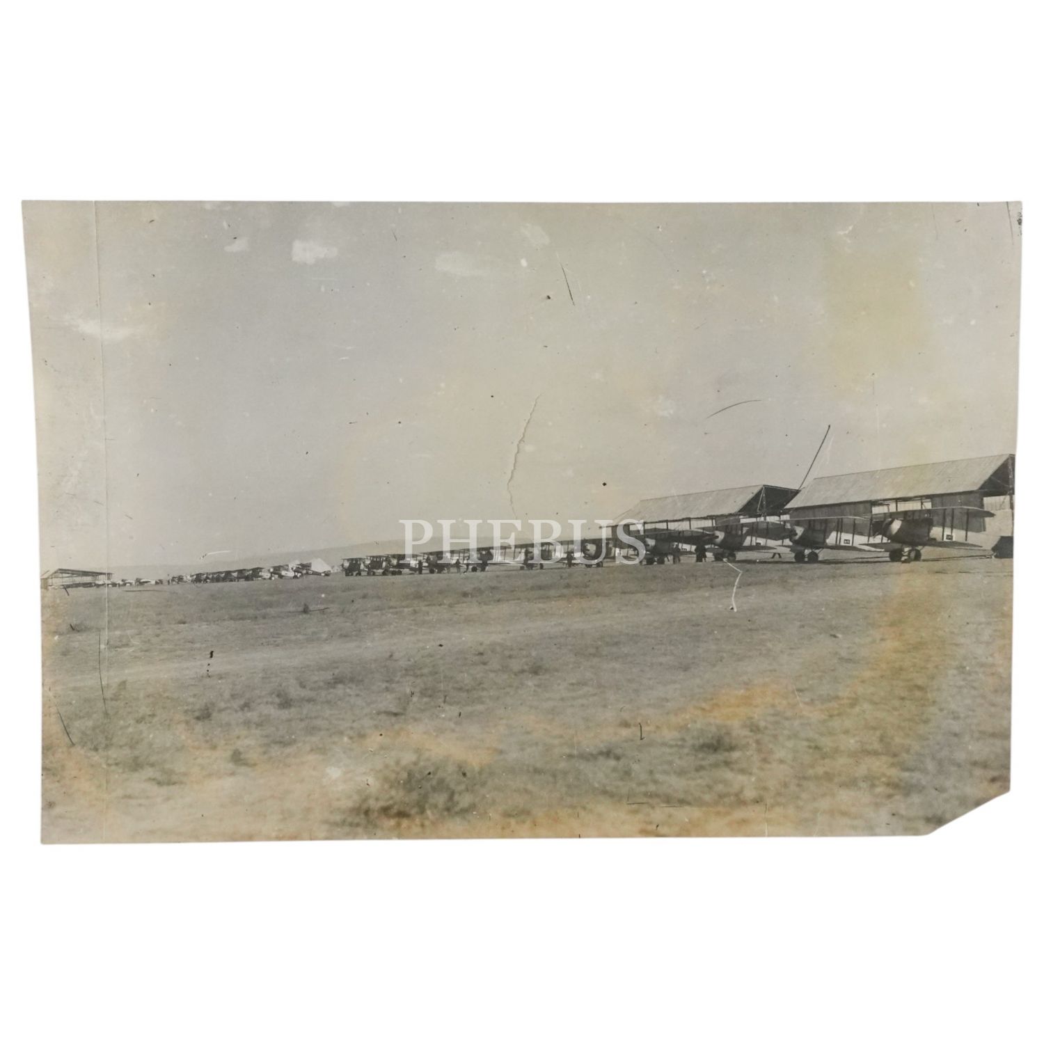 Bir hava üssünde sıralanmış Türk uçakları, 16,5x10,5 cm...