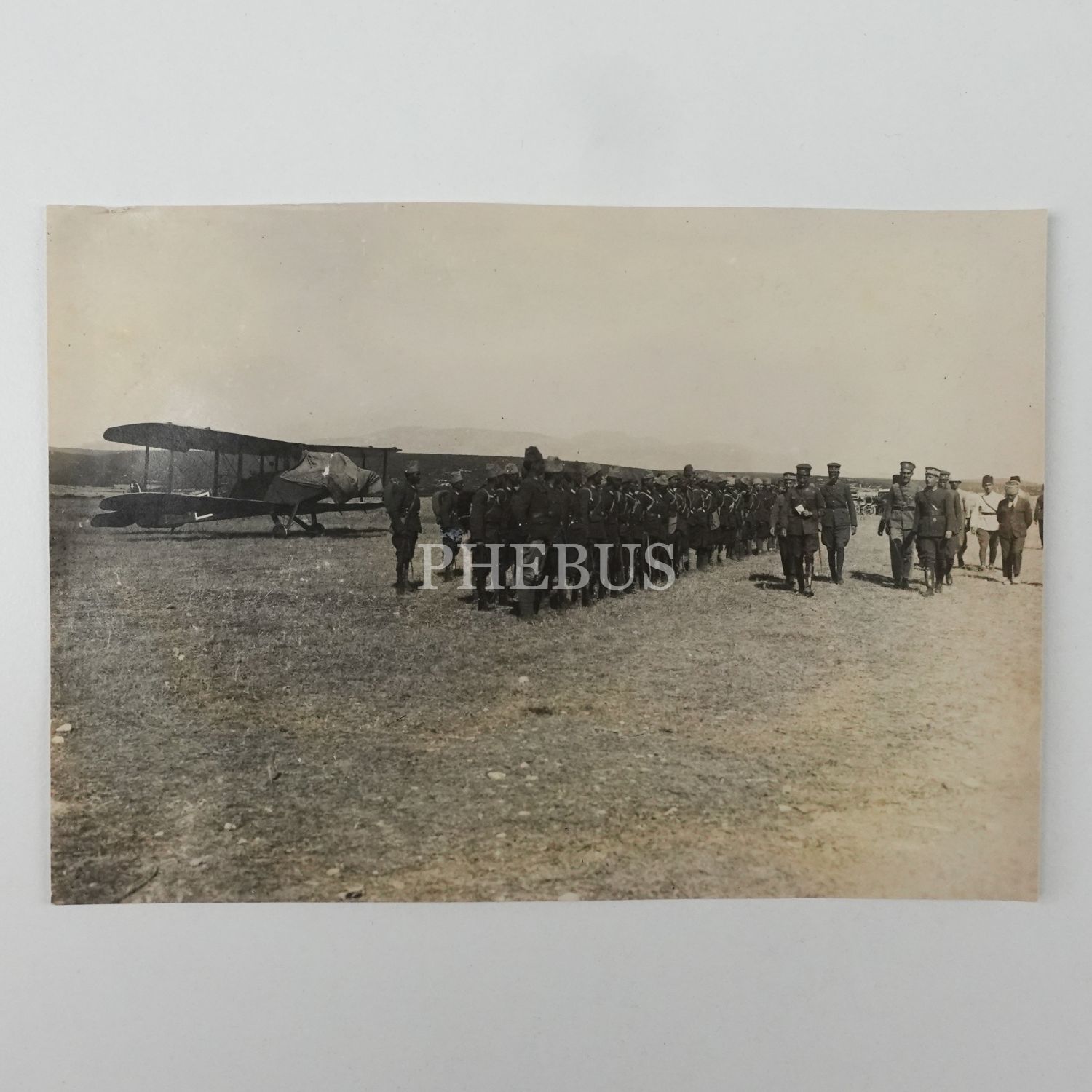 Üst rütbeli bir subay, maiyetiyle birlikte hava üssü denetlemesinde, 16x11 cm...