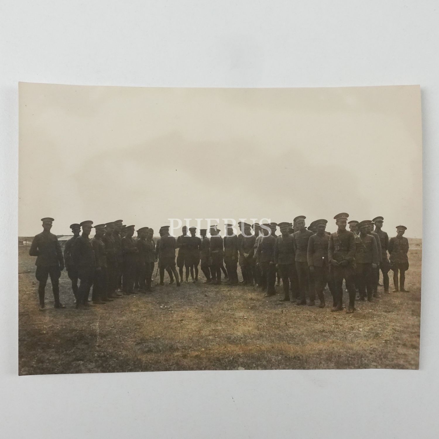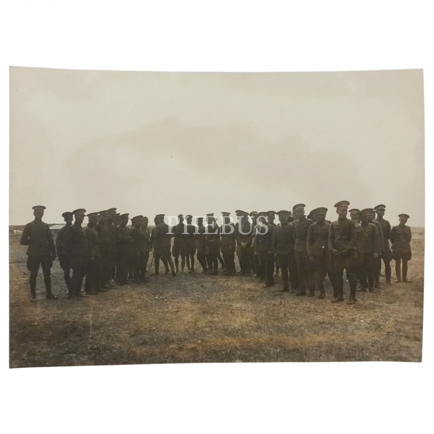 Hava üssünde düzenlenen bir tören için bir araya gelen subayların toplu hatıra fotoğrafı, 16x12 cm...