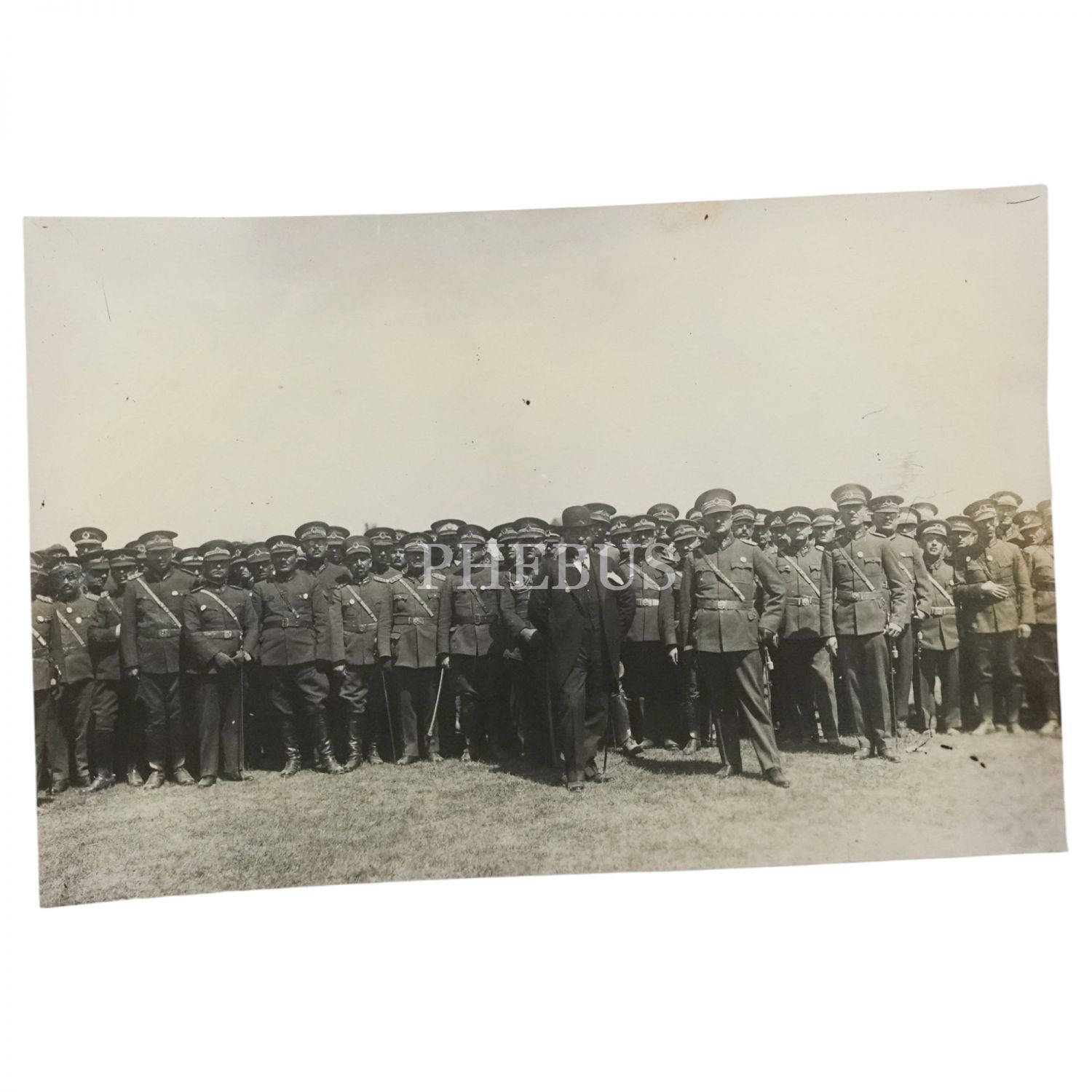 Hava üssünde düzenlenen bir tören için bir araya gelen İstiklal Madalyalı subayların toplu hatıra fotoğrafı, 17x11 cm...