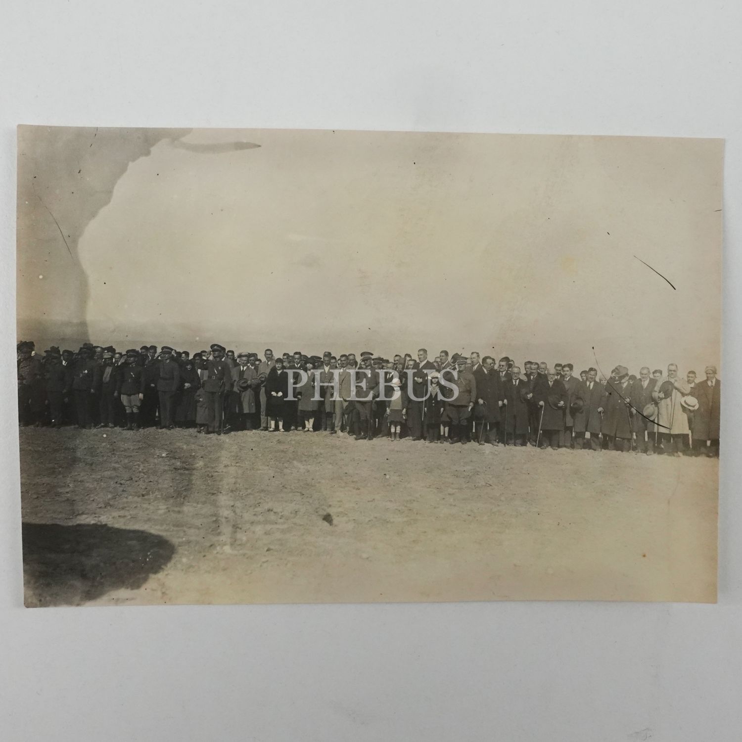 Hava üssünde düzenlenen bir töreni seyretmek için gelen sivil ziyaretçiler ile görevli subayların görüldüğü bir enstantane fotoğraf, 16,5x11 cm...